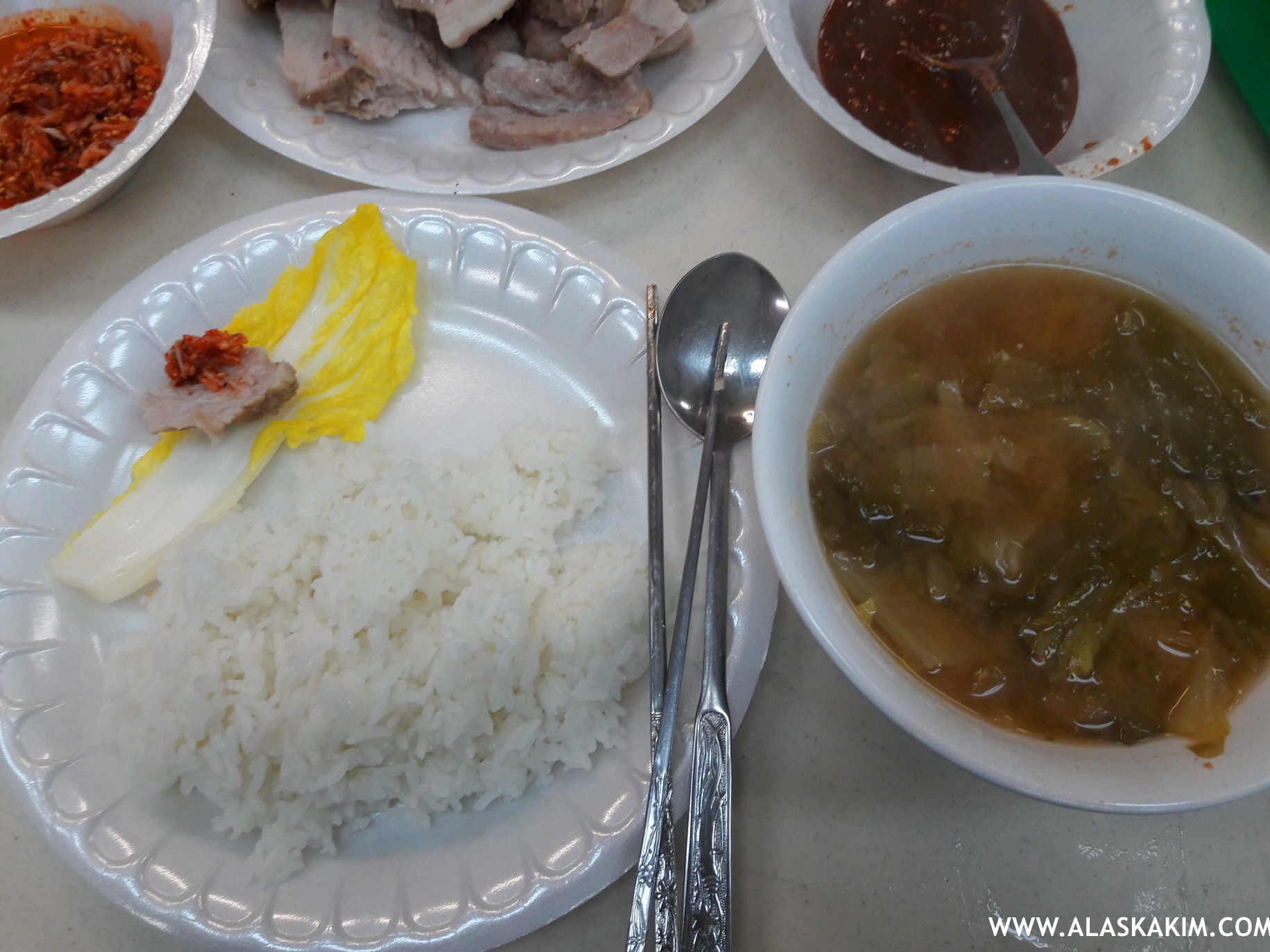 그리고, 돼지수육에 된장국을 곁들여 거한 저녁을