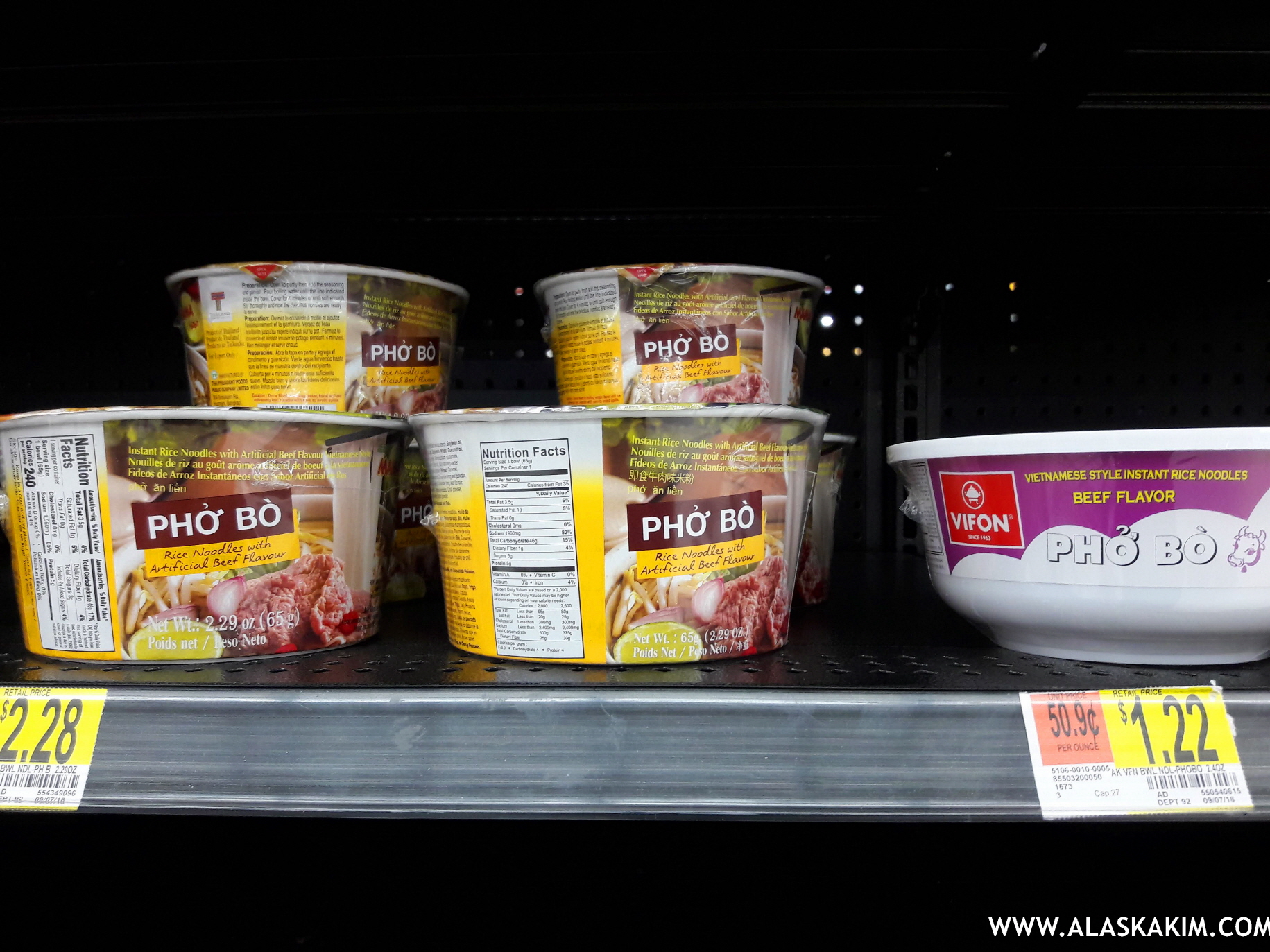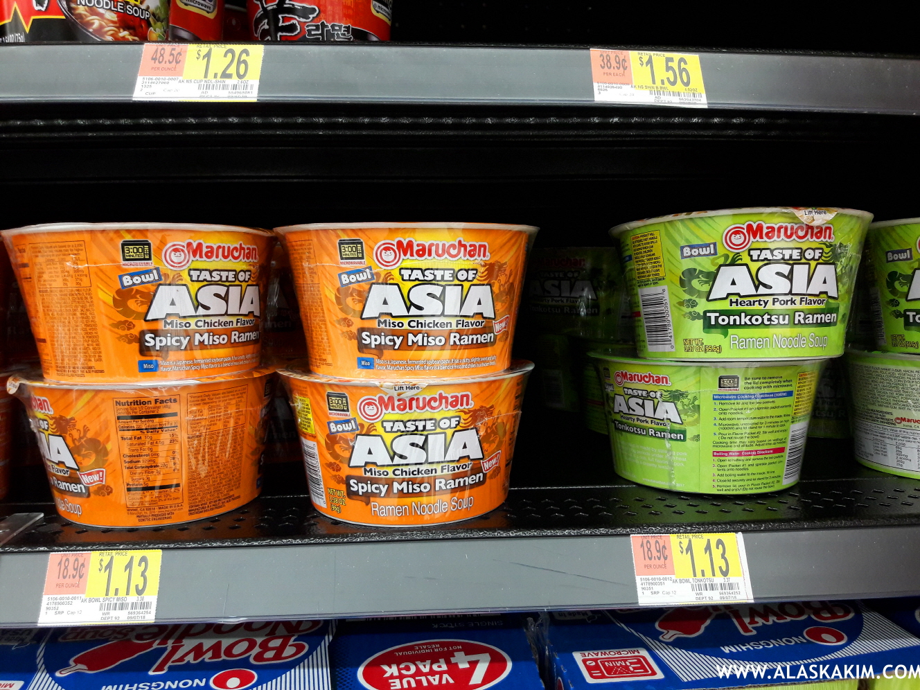 빙그레 컵라면을 팔고 있는 월마트입니다.