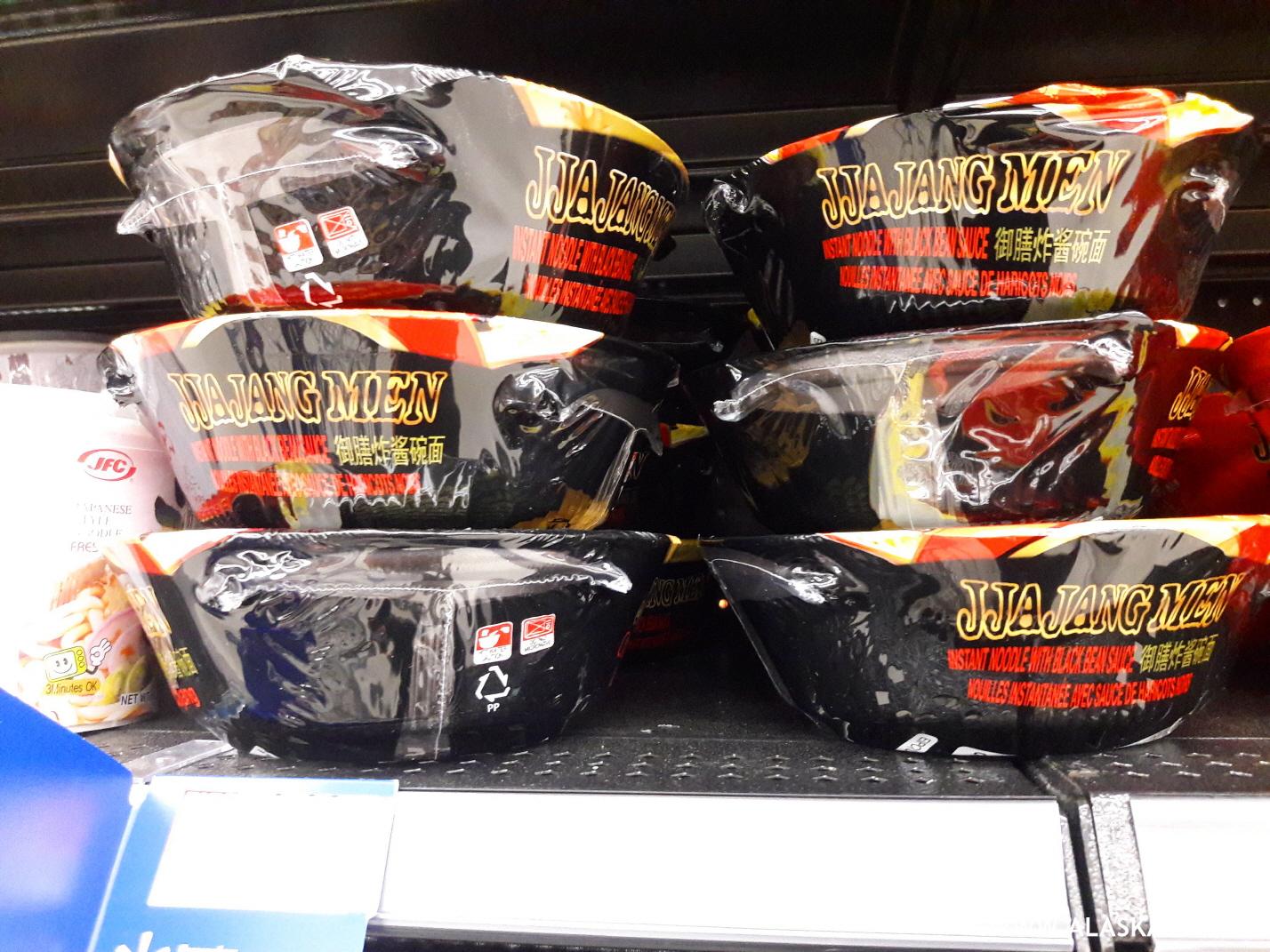 컵 짜장면인데 한문도 쓰여있어 어느 나라 제품인지 모르겠네요.