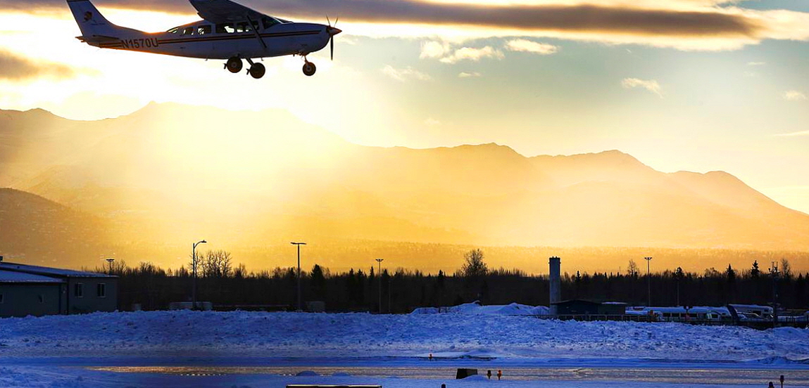 공항에 경비행기가 착륙하기 전 모습입니다.