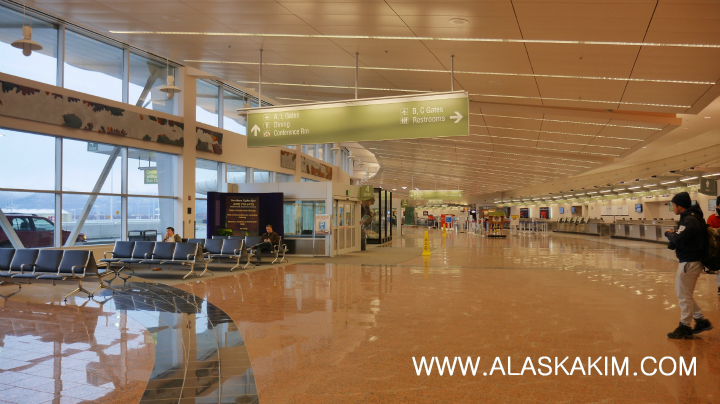 알래스카 앵커리지 공항은 붐비지 않아 굳이, 두 시간 전부터