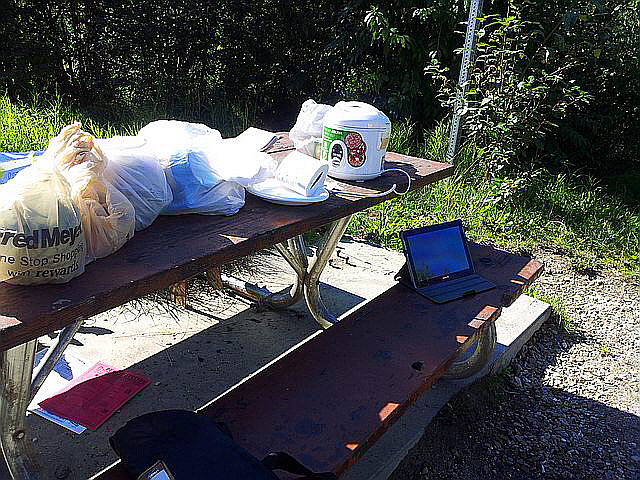 그리고, 밥을 해서 아주 밥통째 가져 나왔습니다.