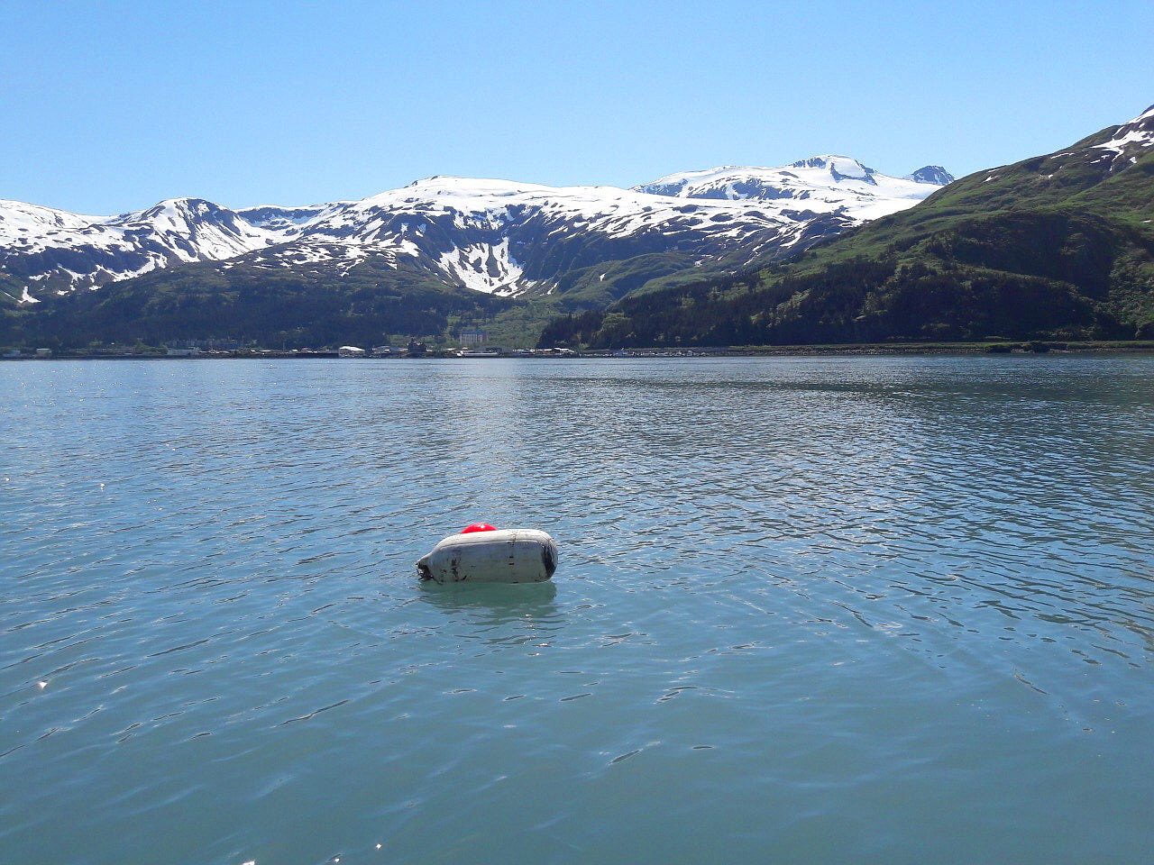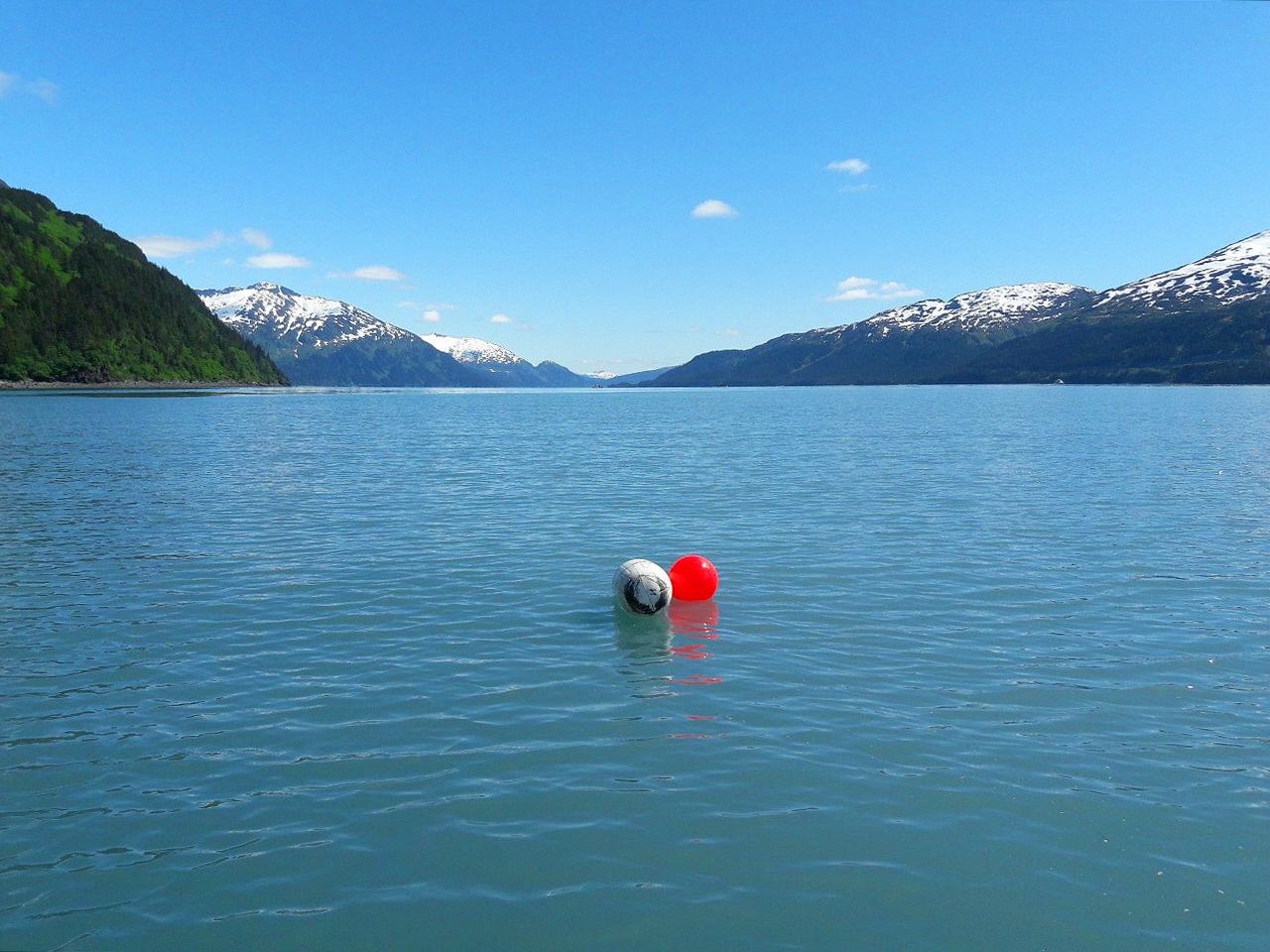 새우 통발을 내리고 부표를 띄워 놓았습니다.