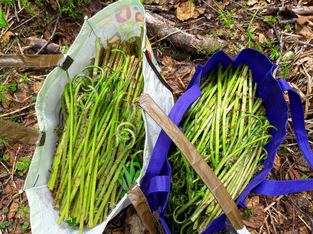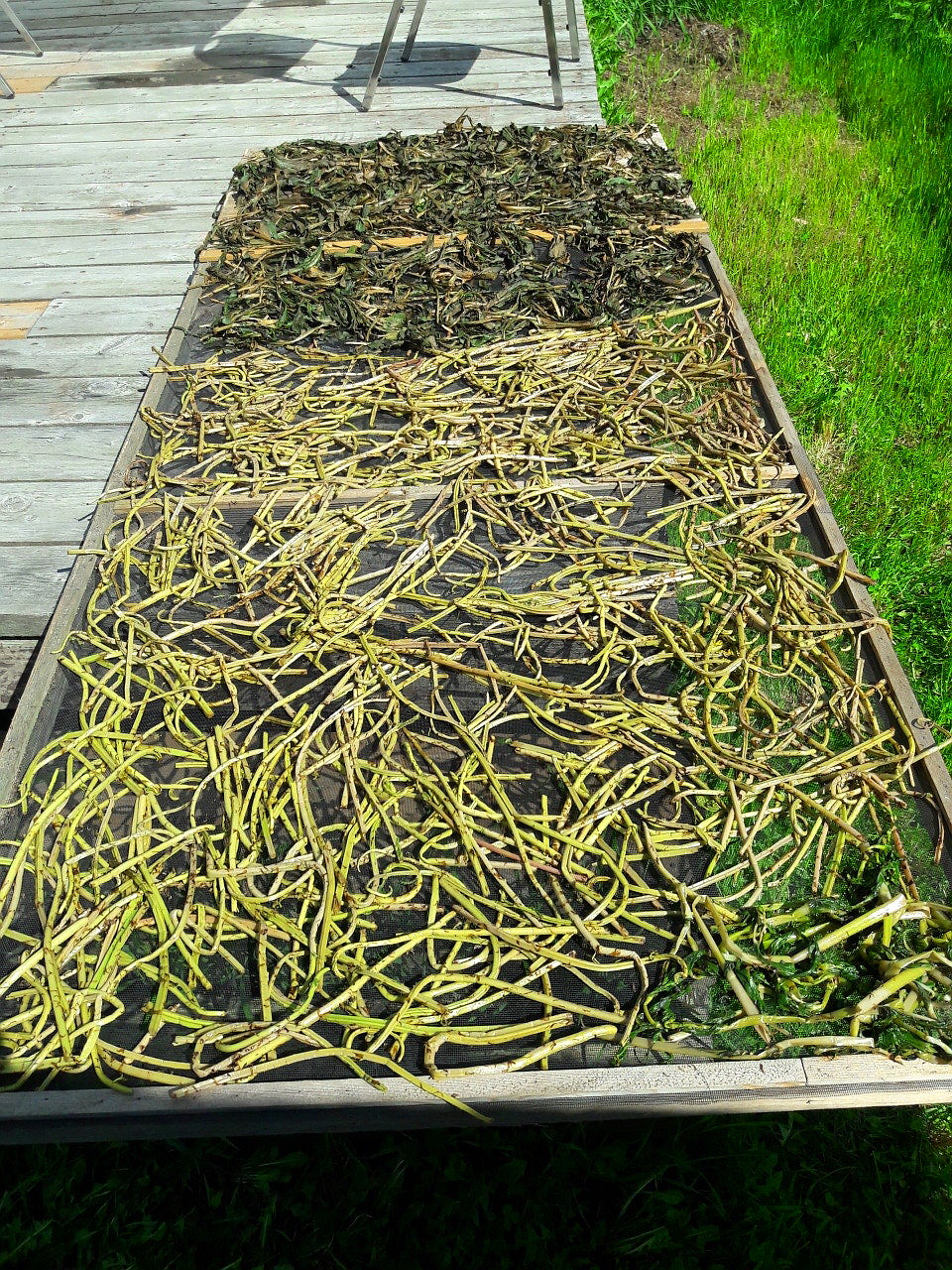 채취해서 살짝 데쳐서 삶아 백야의 쨍한 햇빛에