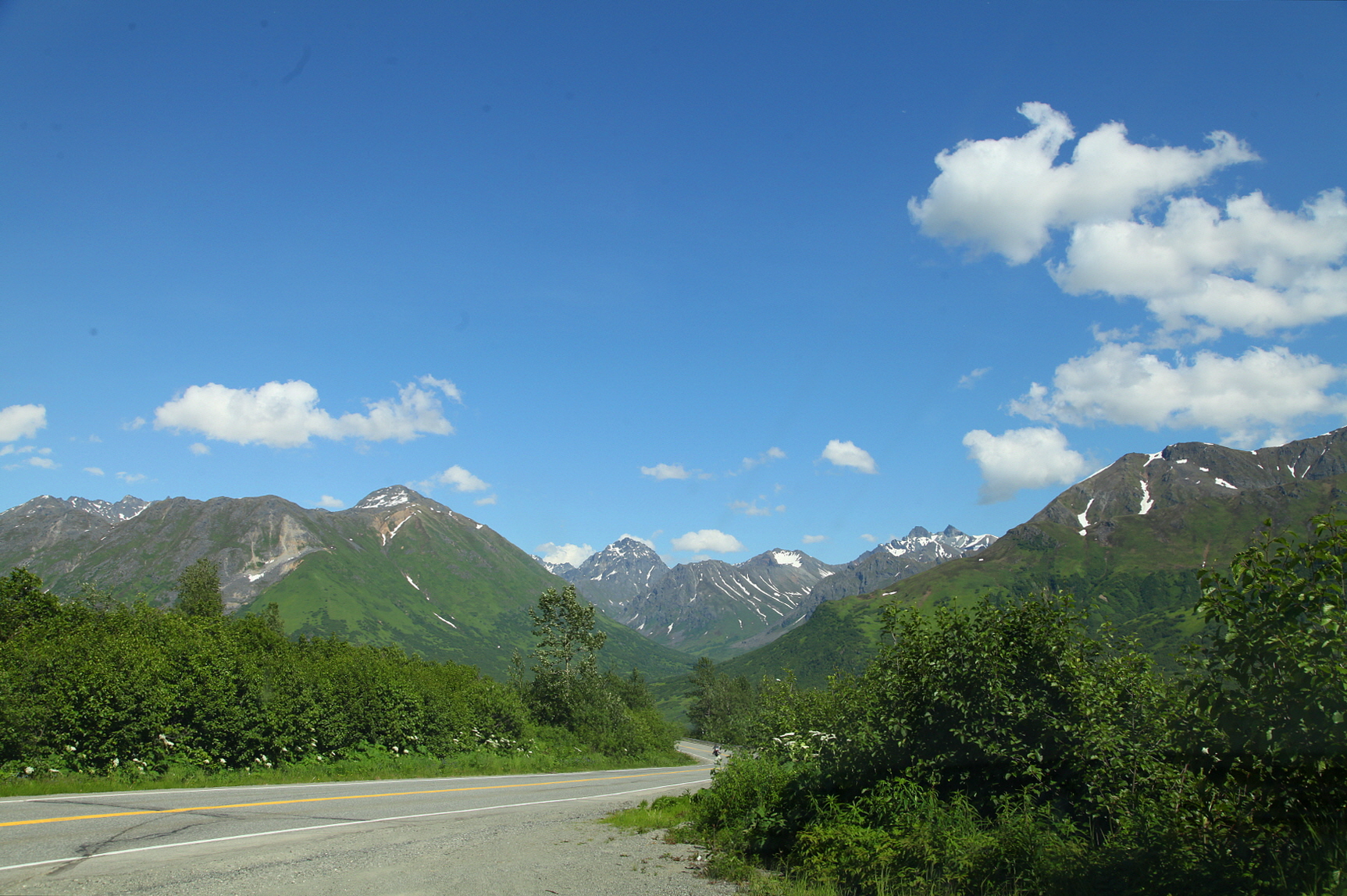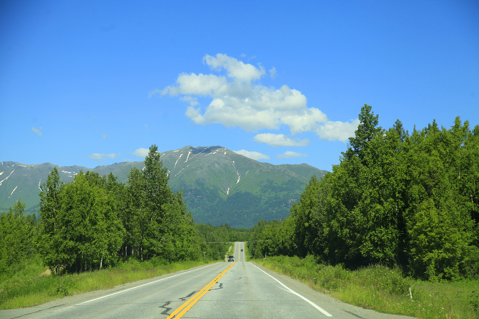 새침데기 알래스카 구름은 산 위에 아직도 자리 잡은 만년설과