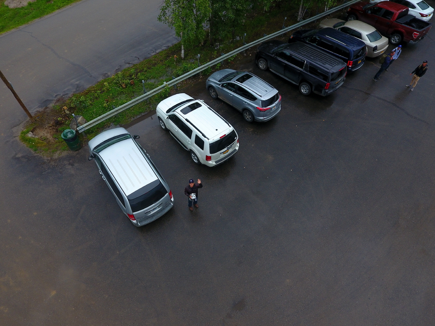 제 차 앞에서 제가 손을 흔들고 있네요.