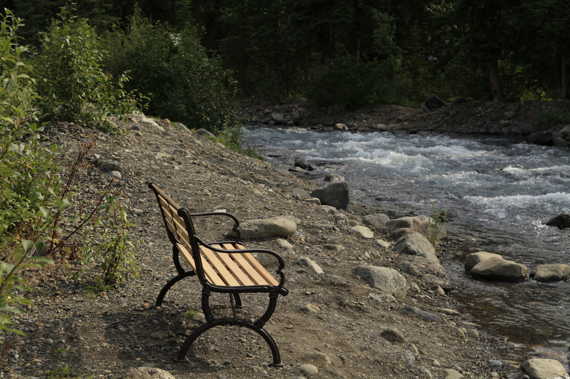 빙하수가 녹아 흐르는 계곡가에 카페가 있고 잠시