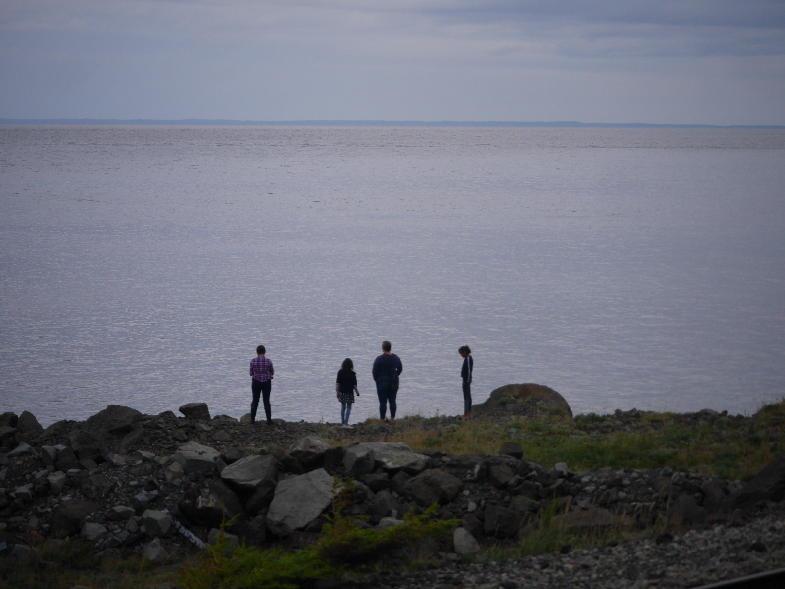 사람들이 모여서 바다를 보고 있어저도, 도로에