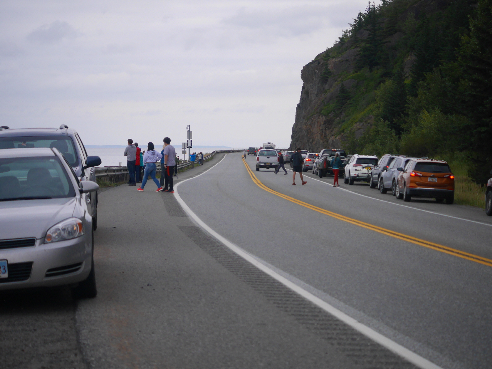 저마다 갓길에 세우고, 돌고래 구경에 여념이 없습니다.