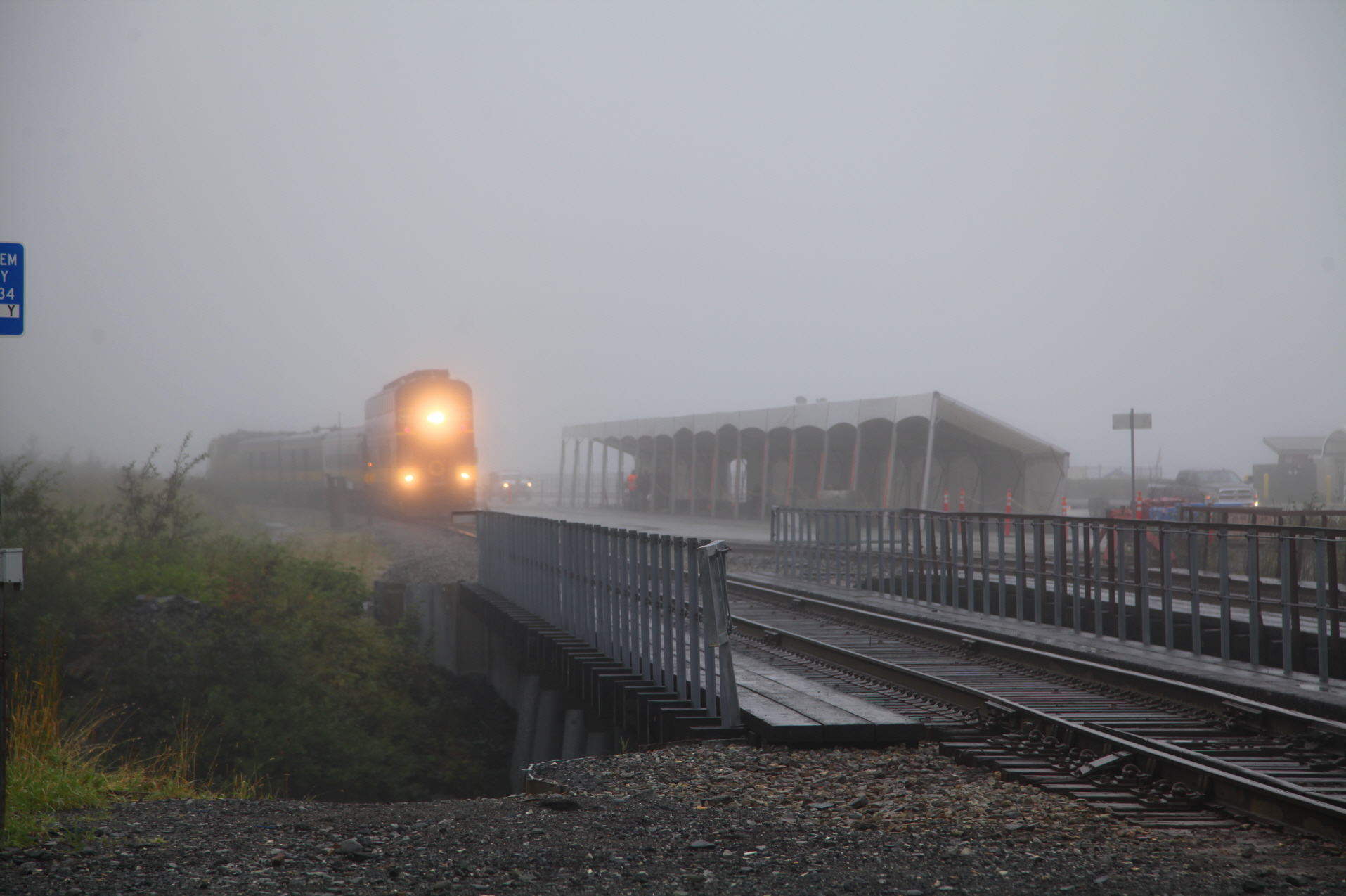 기차가 머무는 위디어 기차역인데, 우측에 천막을 친 곳이