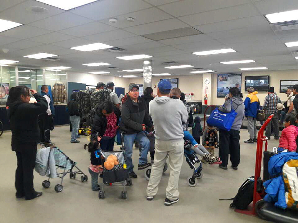 비행기를 기다리는 승객들.