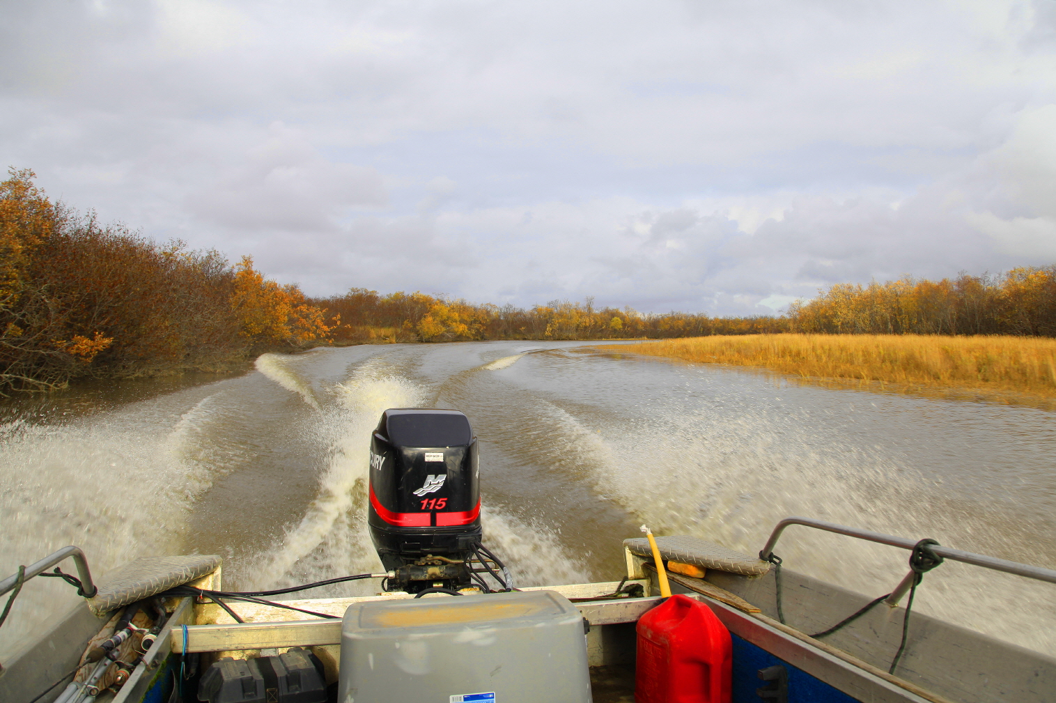 Kuskokwim River의 부둣가에도 이제는 가을 단풍으로 짙게 황금색으로