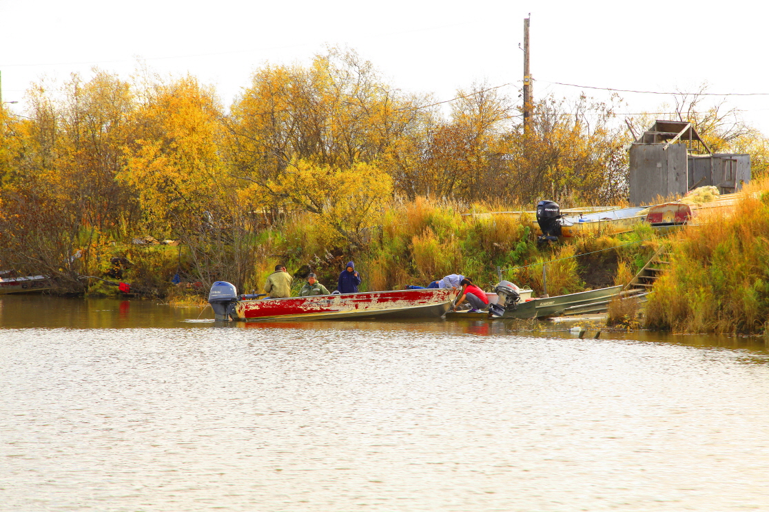 Kuskokwim River의 부둣가에도 이제는 가을 단풍으로 짙게 황금색으로