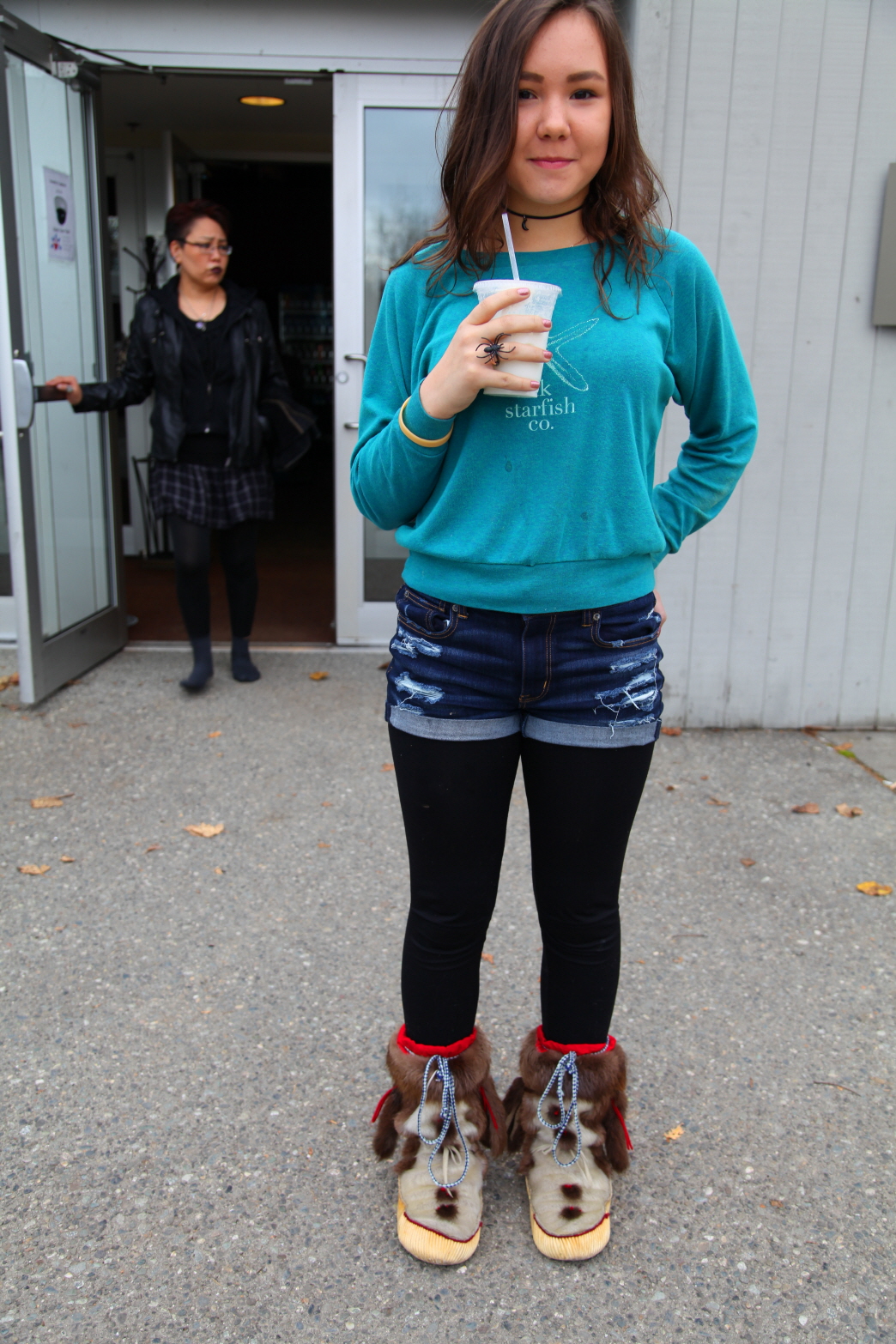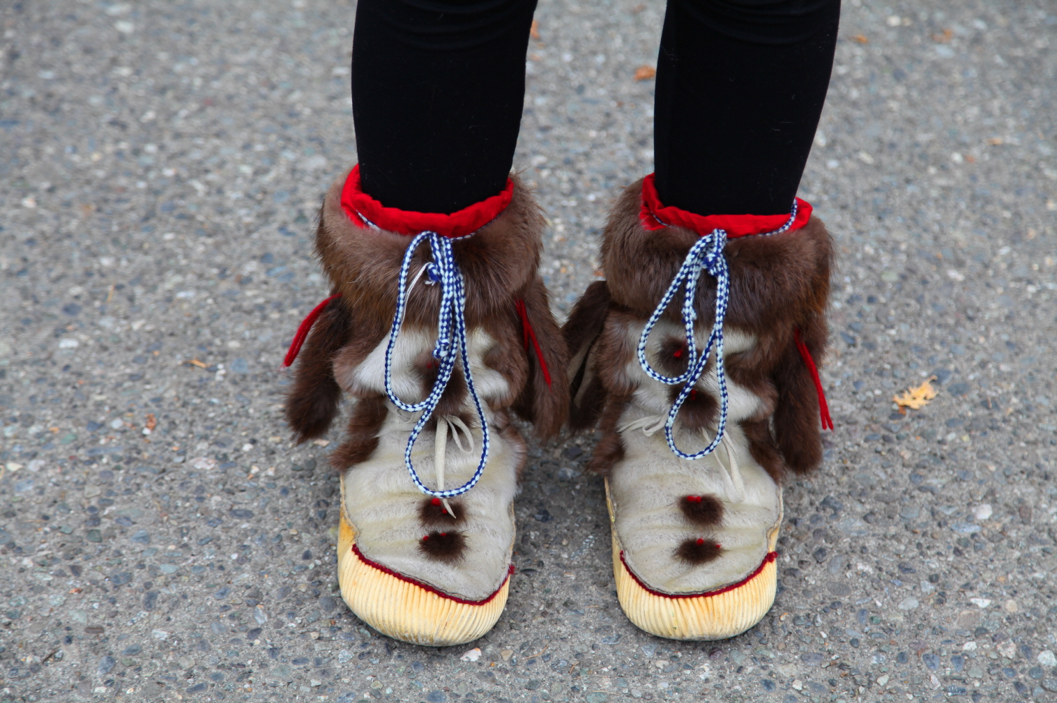 아름다운 처자가 물개 가죽으로 만든 신발을