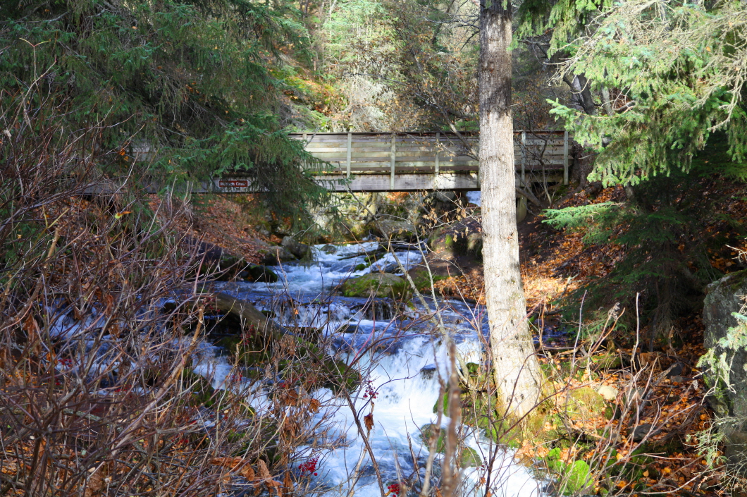 고즈 녘 한 등산로를 따라 이어지는 계곡의