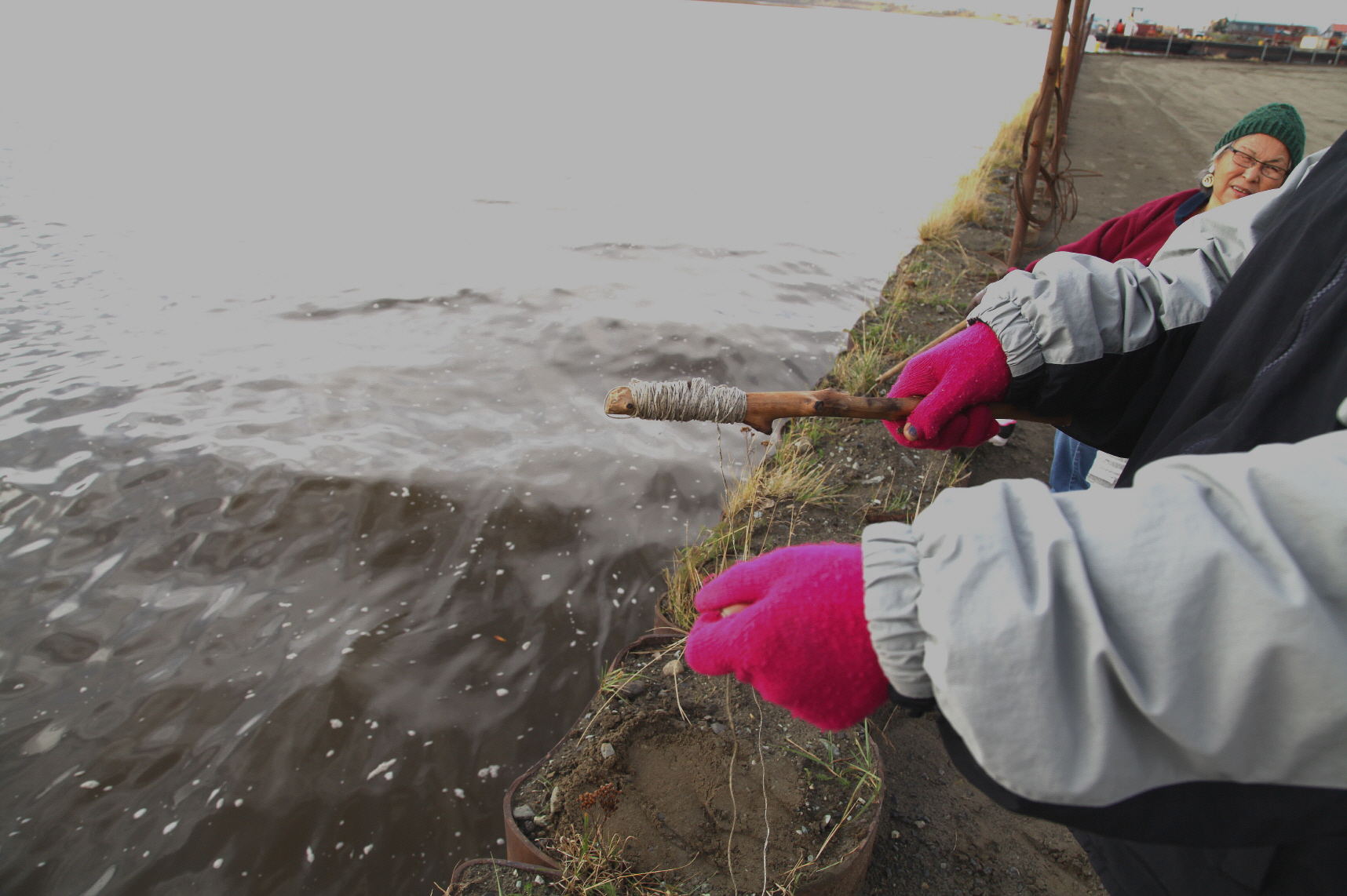 낚시를 하는 모녀를 만났는데 낚싯대가 없고