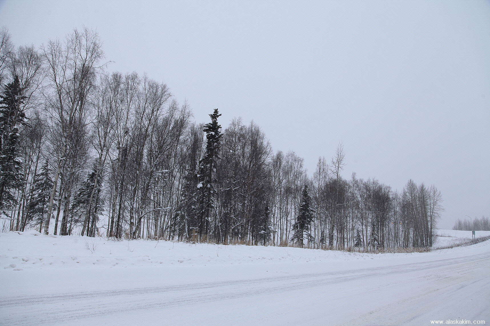 알래스카 도로는 가운데 중앙분리선에 조금은 넓게 공간이 있어