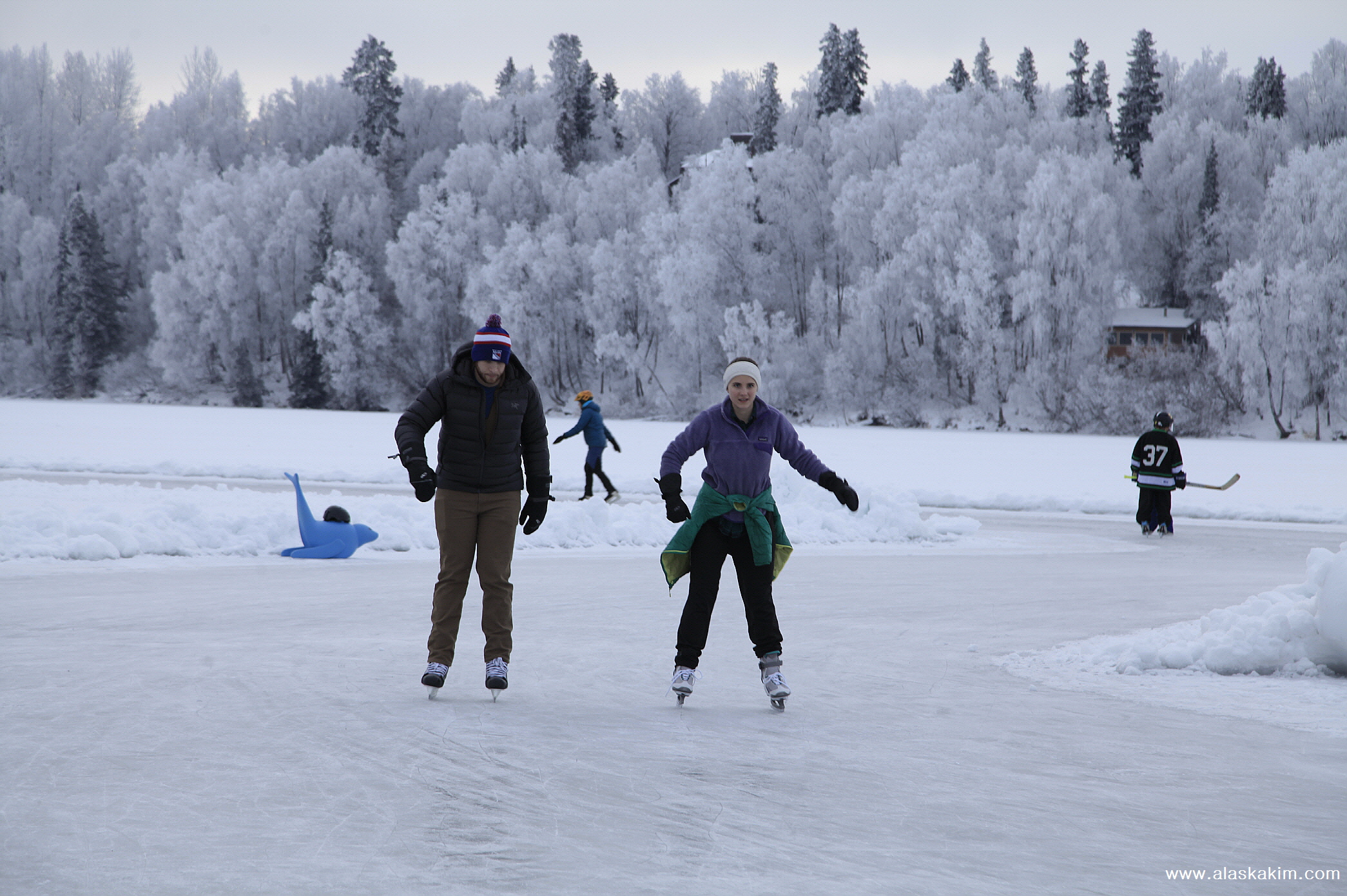 앵커리지 다운타운에 있는 호수의 설경은 마치,