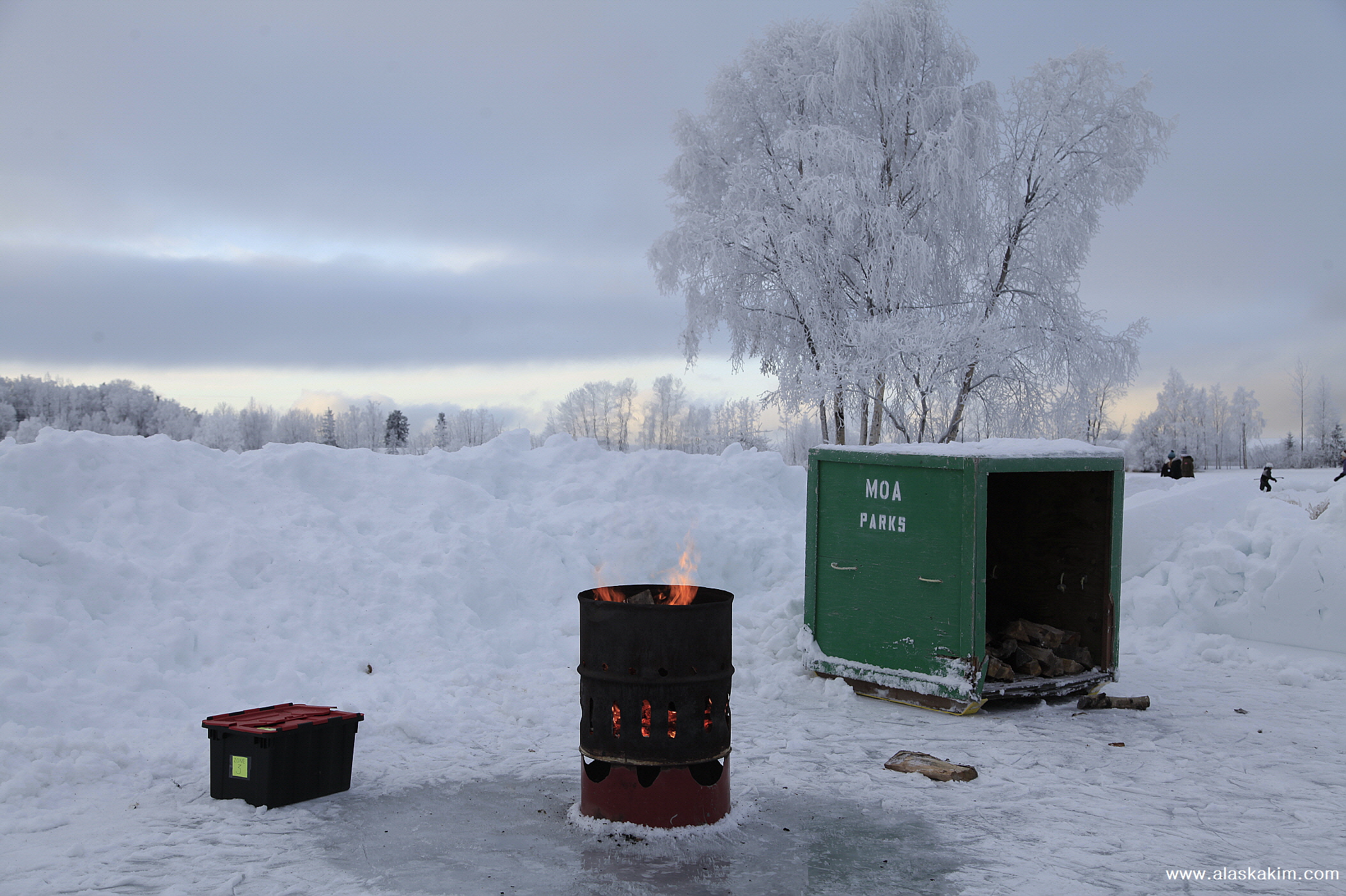 워낙 얼음 두께가 두꺼워서 드롬통에 장작을 때워도 튼튼합니다.