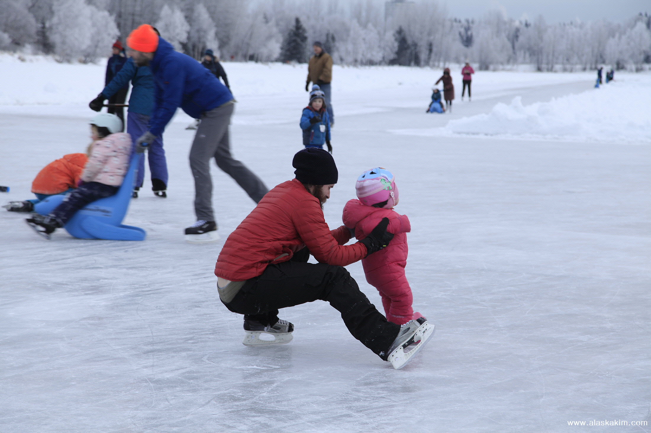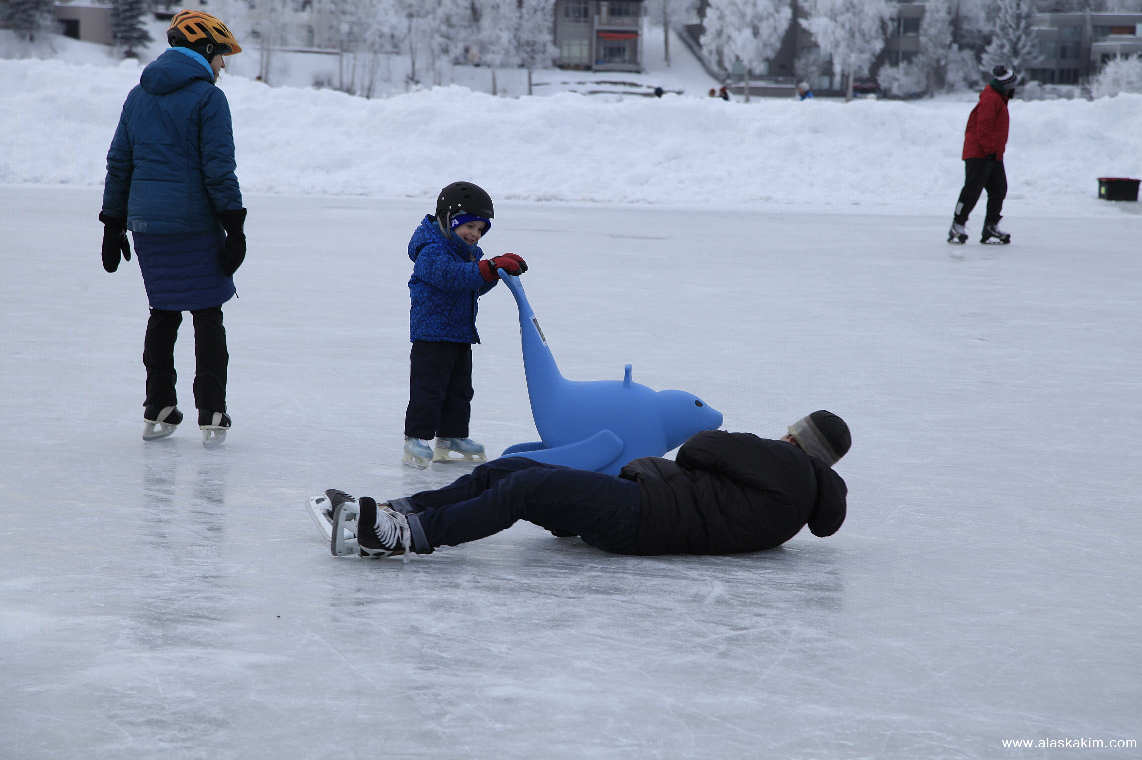 가족끼리 몰려나와 스케이트를 배우는 모습도