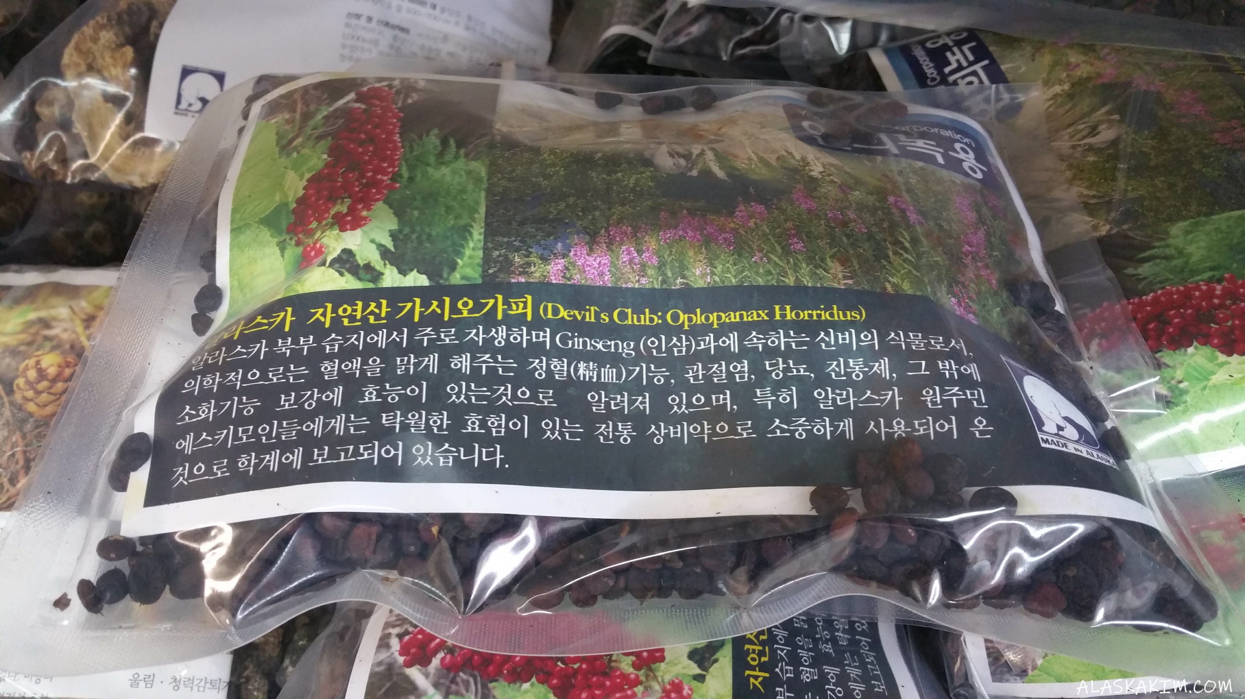 알래스카는 워낙 자연환경이 독특해 다양한 약초와버섯들 그리고, 야생동물들이 많이 서식을 하고 있습니다.차가버섯, 말굽버섯, 상황버섯이나 노루버섯등은 지천으로널려 자라고 있습니다.그래서, LA에서 사업에 실패한 한인들은 거의 맨몸으로라면만 몇 개 가져 오가나 , 100불 정도 가지고 와서 알래스카에서 다양한 버섯과 약초들로 자본을 만들어