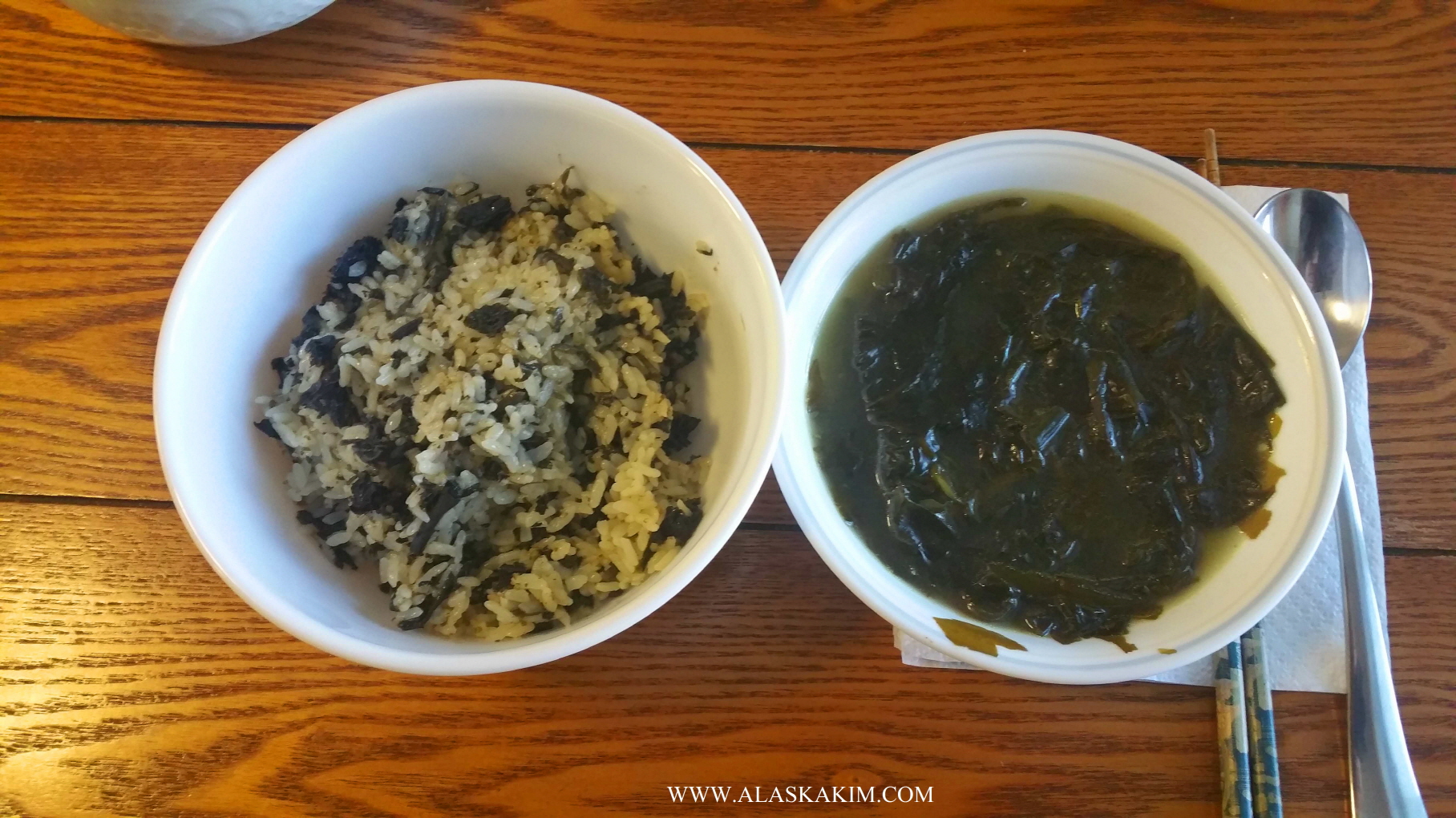 직접 딴, 미역으로 미역국을 끓였습니다.
