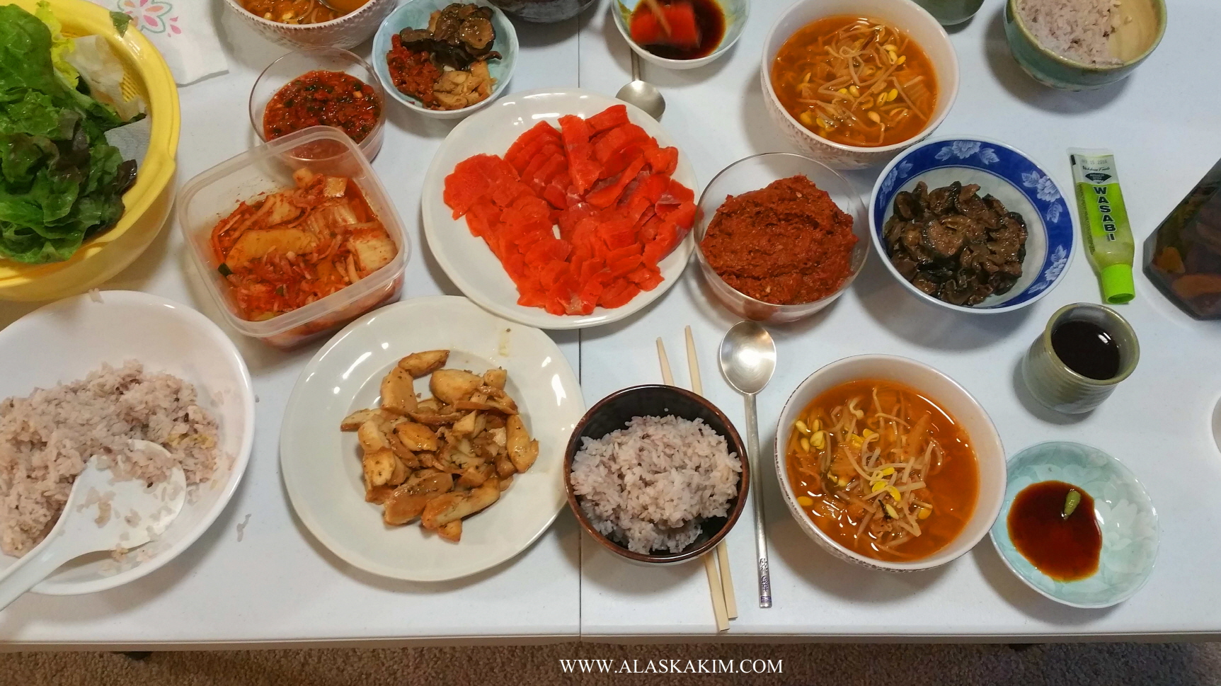 매 끼니 식사 때마다 연어회는 식탁 위를