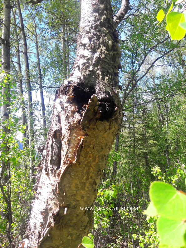 실제 차가버섯이 자라고 있는 자작나무를