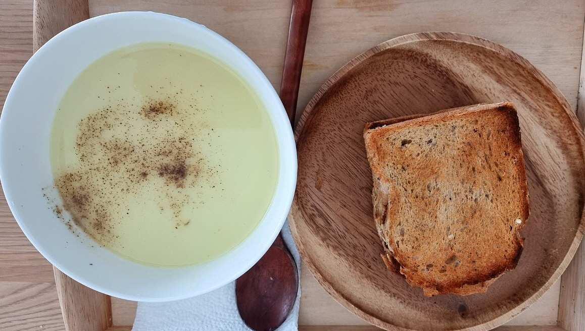 스크램블과 나박김치인데 , 나박김치가 간이 세서