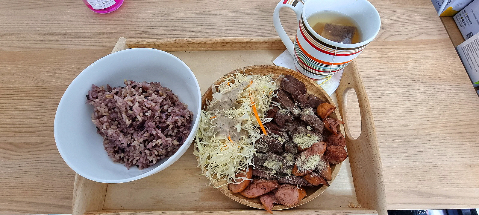 현미와 흑미로 돌솥밥을 짓고,, 양배추 샐러드와