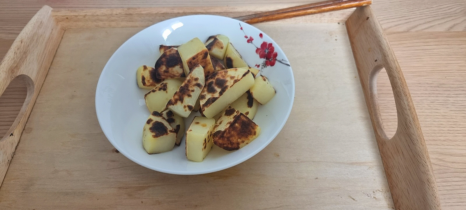 감자를 간 없이, 기름기도 없이, 구워 보았다.