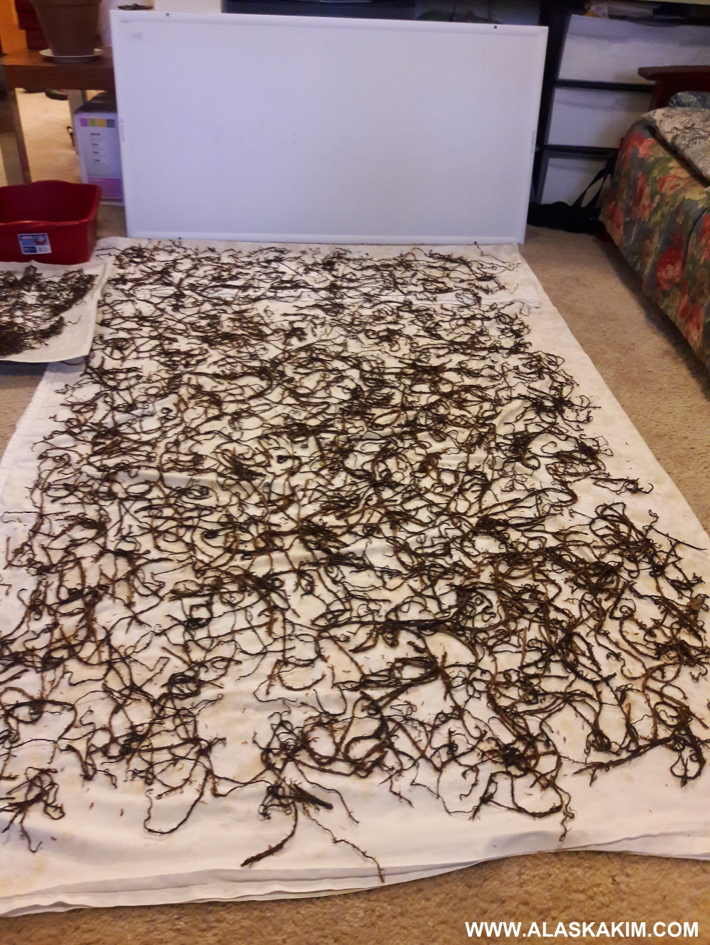 고비를 말리다가 비가 내리면, 급히 방으로 가지고 들어와