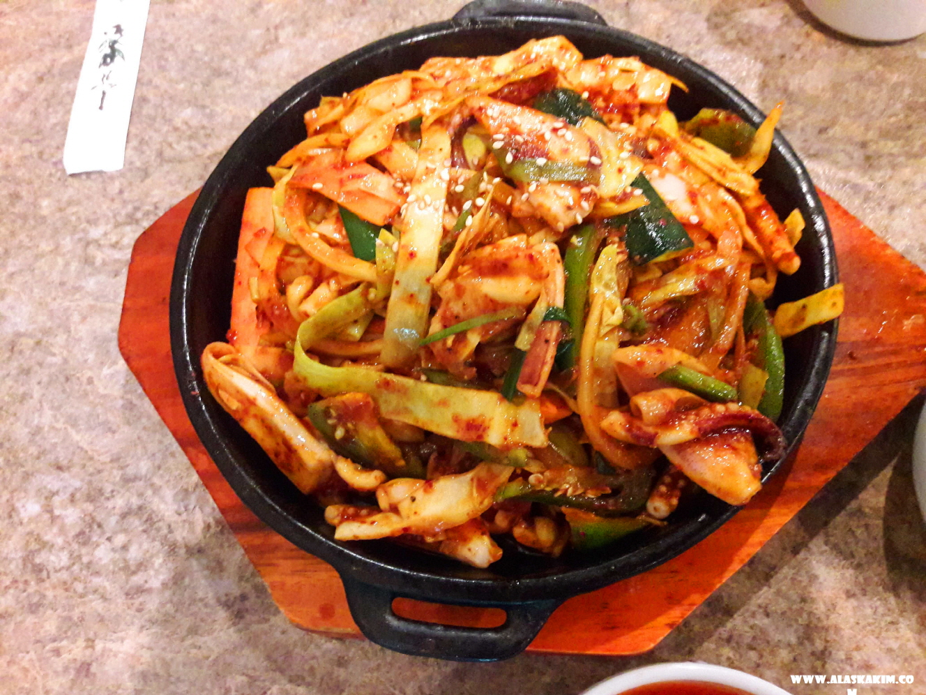 저녁에는 매콤한 오징어 볶음을 주문했는데