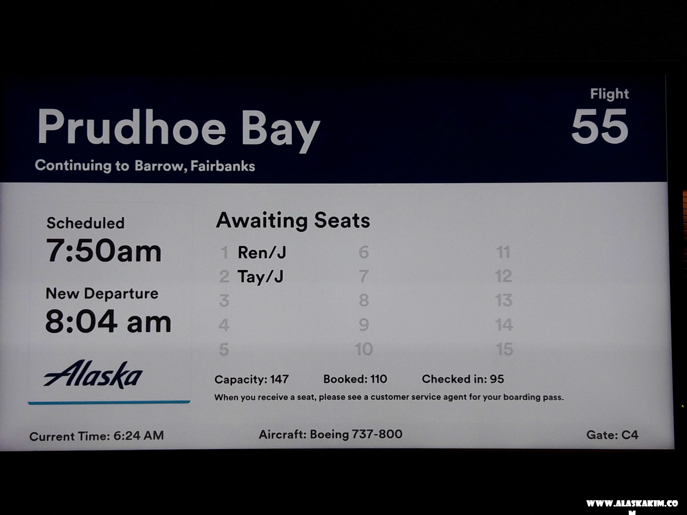 이른 아침 서둘러 공항에 나와 다시, 푸르드호 베이 북극으로 가는 비행기에