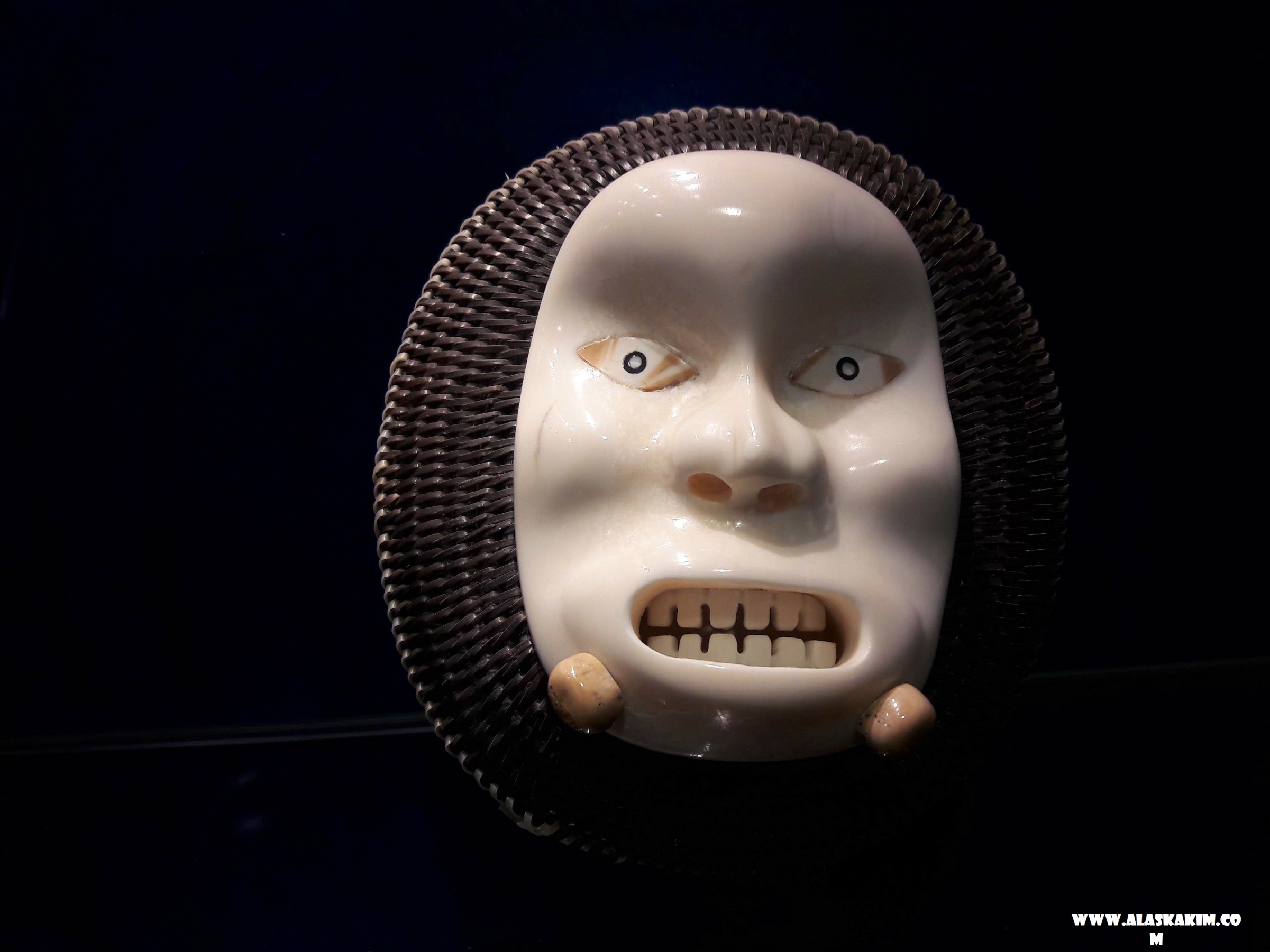 고래의 골반 뼈와 상아, 북극곰의 털로 만든 마스크입니다.