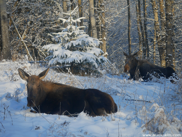 지난겨울 공원을 가다가 만난 무스 모녀입니다.