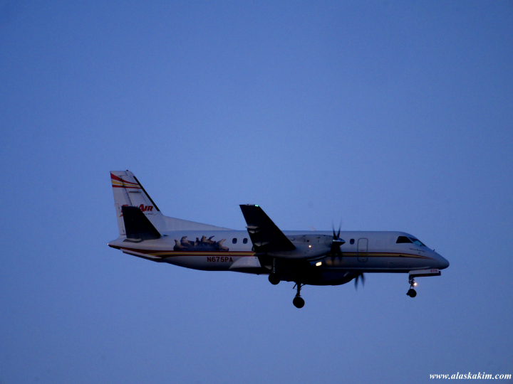 앵커리지 공항 근처에서 비행기가 착륙하는 모습을 한참이나 지켜보았습니다.
