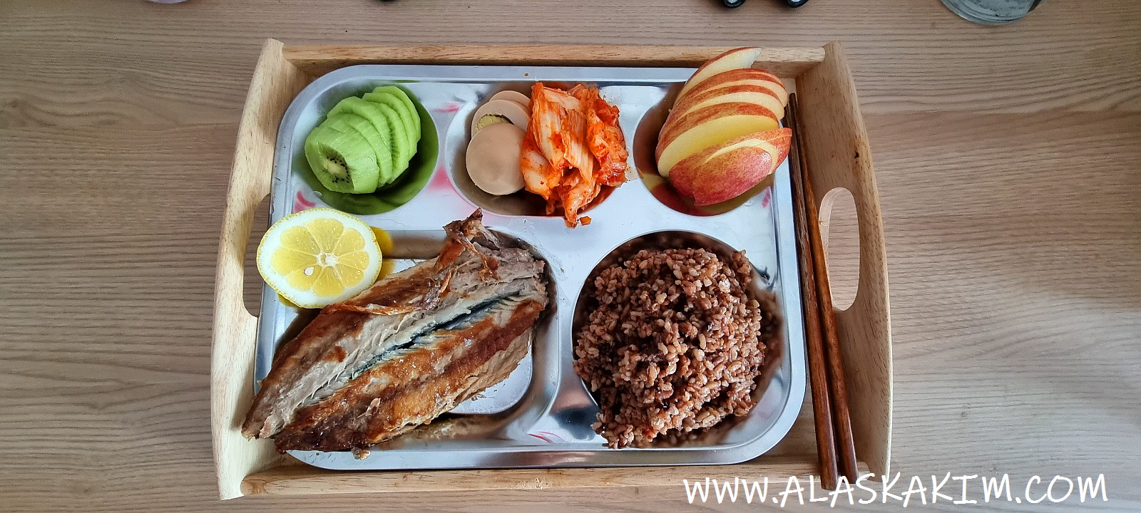 저 식판이 워낙 작은 거라 밥을 조금만 담아도 많아 보이네요.