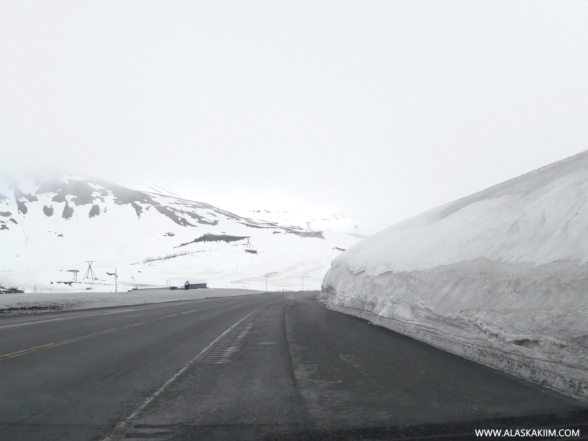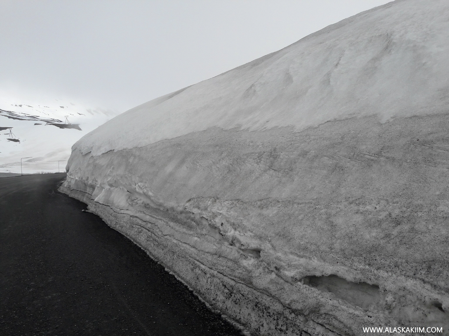 눈이 어마무시하게 쌓여있는 탐슨패스 도로와 일명 말꼬리