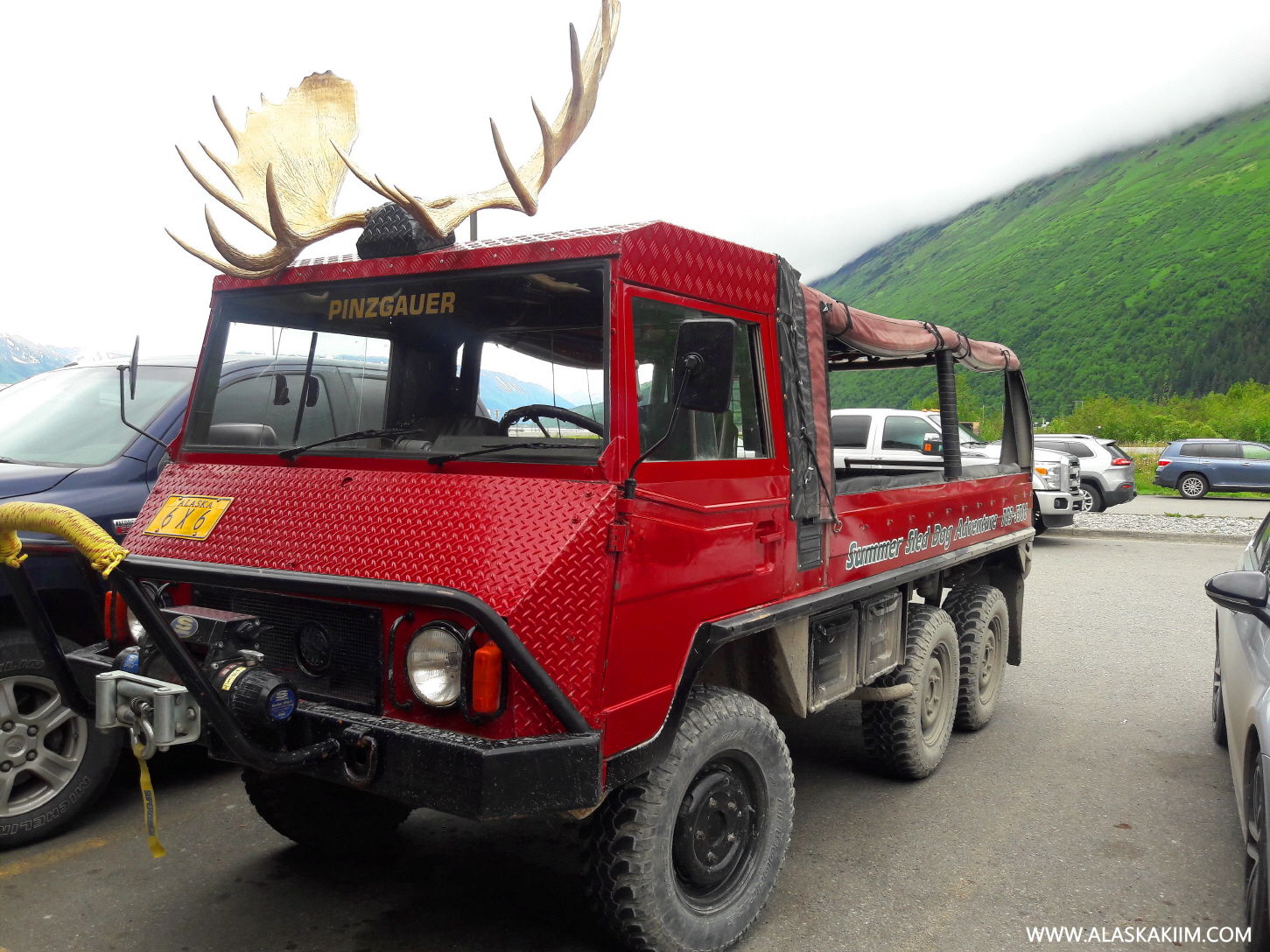 이 트럭은 아웃도어 관광객을 실어 나르는 트럭인데,