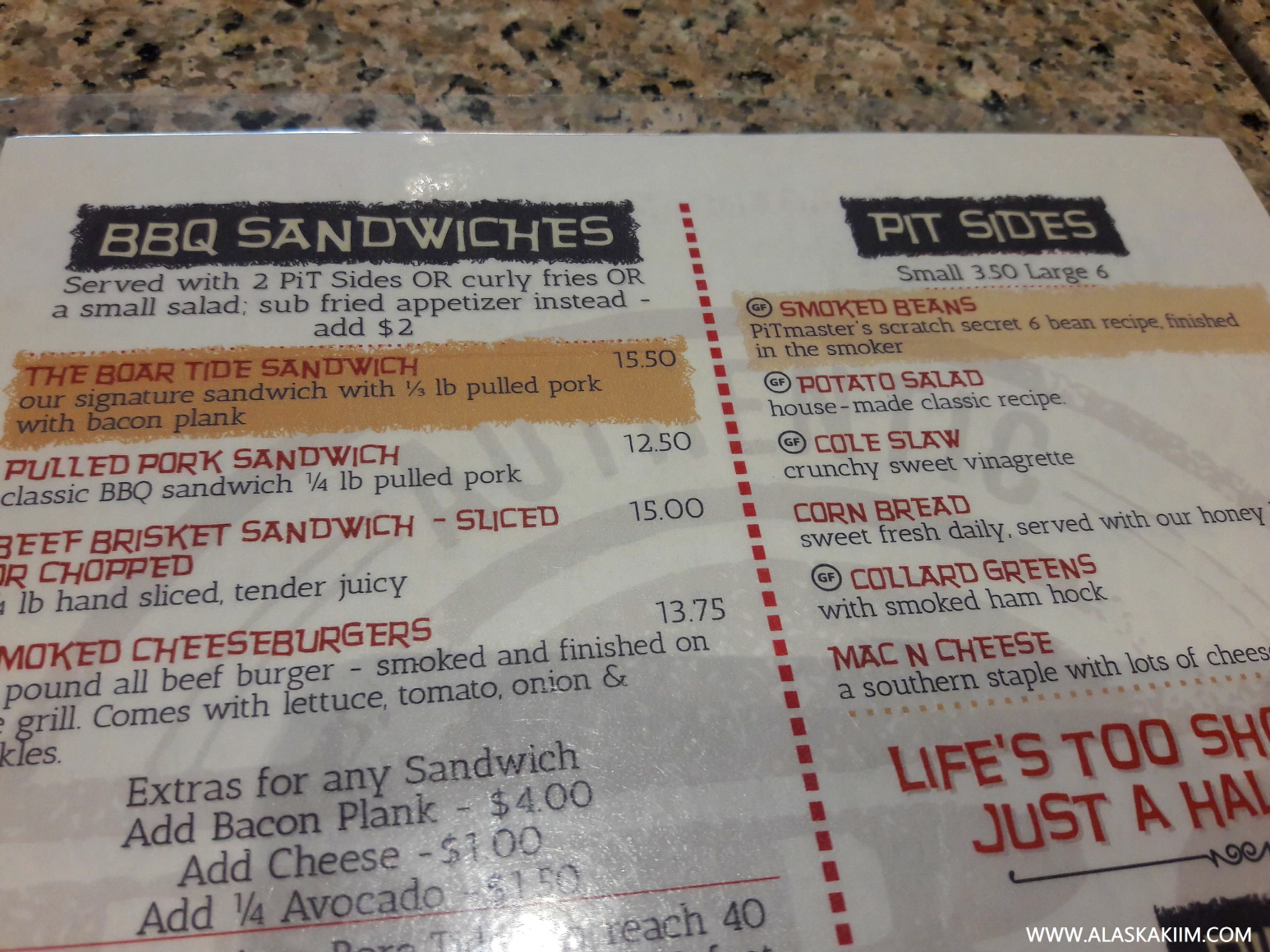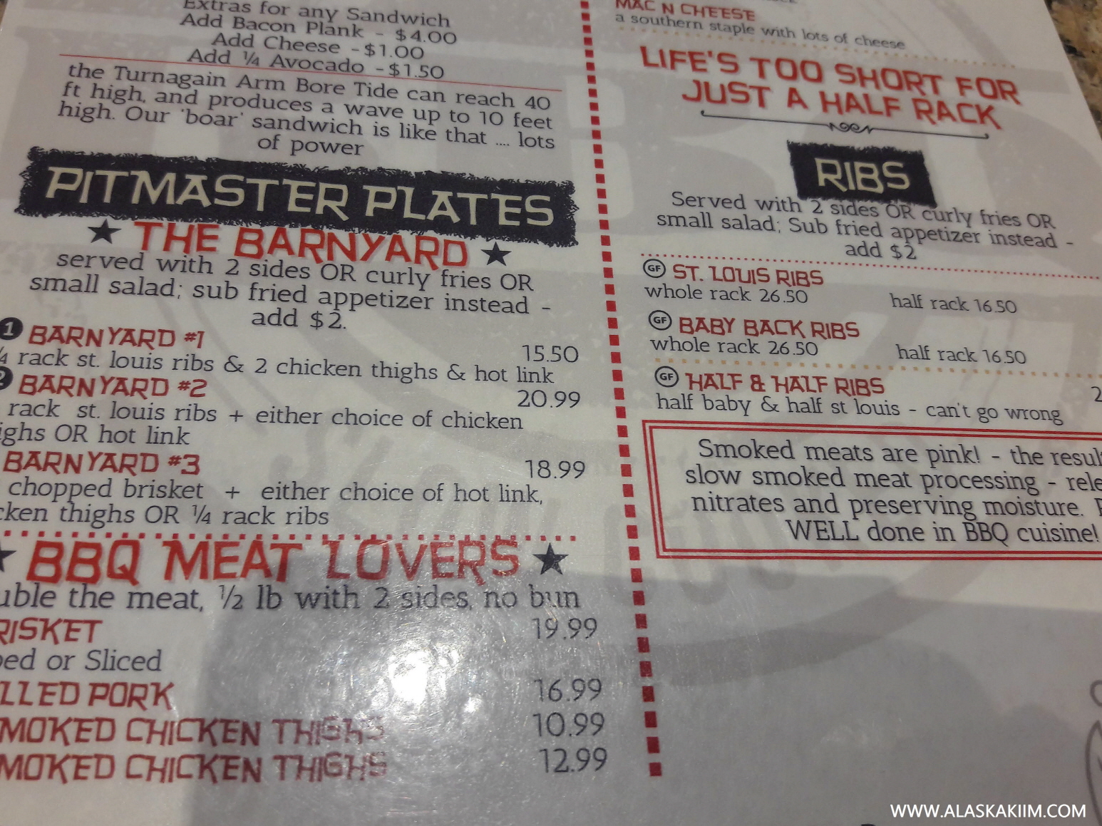 그리고, 제일 중요한 바비큐 레스토랑의 메뉴를 소개합니다.