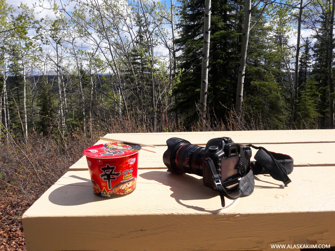 사진을 찍으러 다니다가 간식으로 컵라면을 하나 꺼내