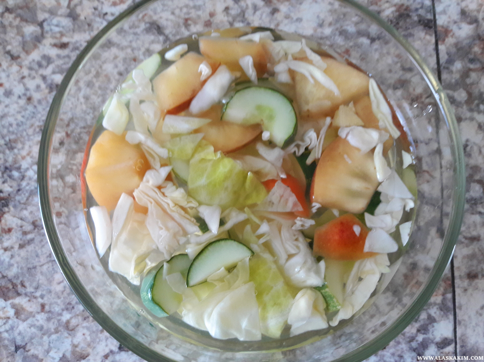 사과와 배를 널고 물김치도 담갔습니다.