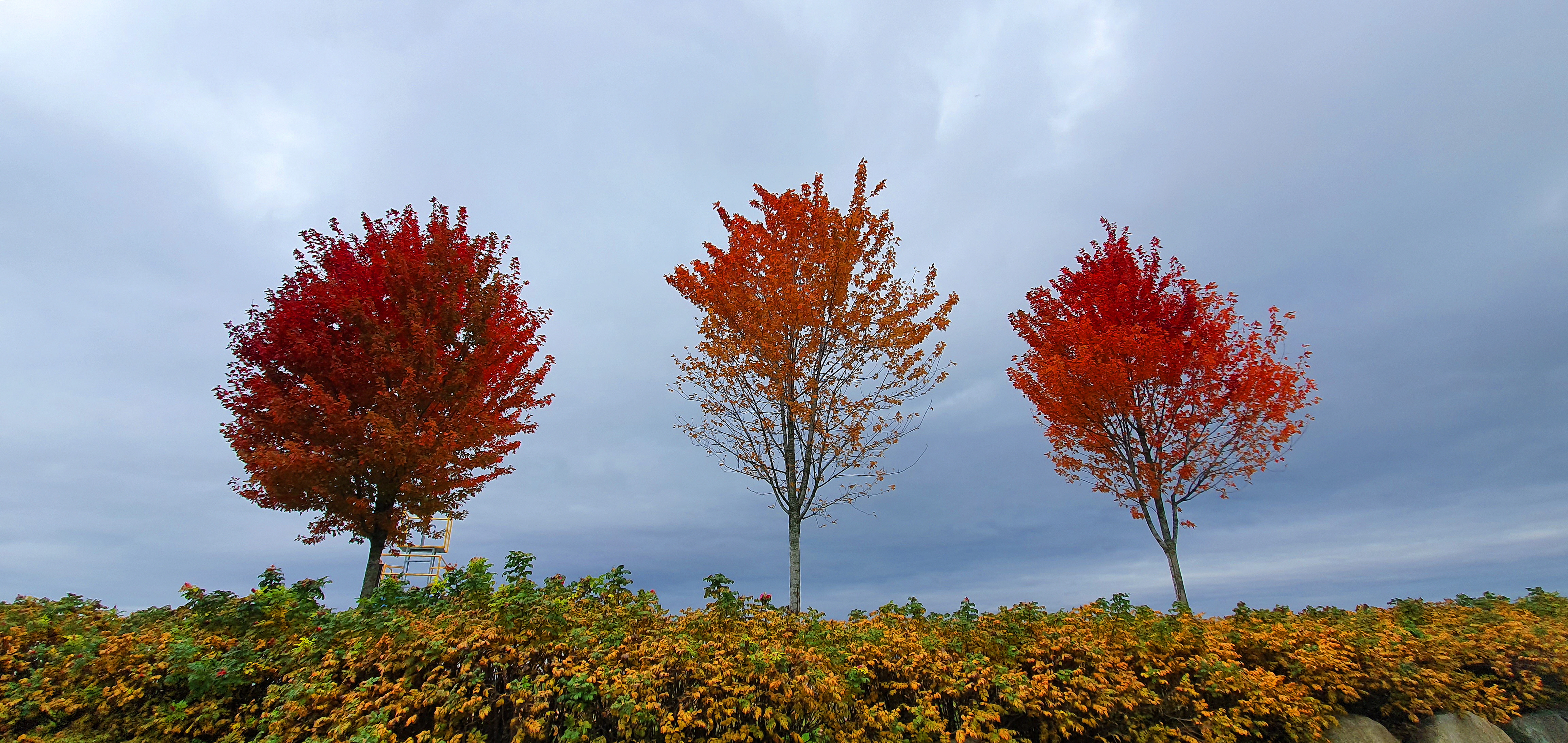 단풍나무 삼 형제가 눈길을 끄네요.