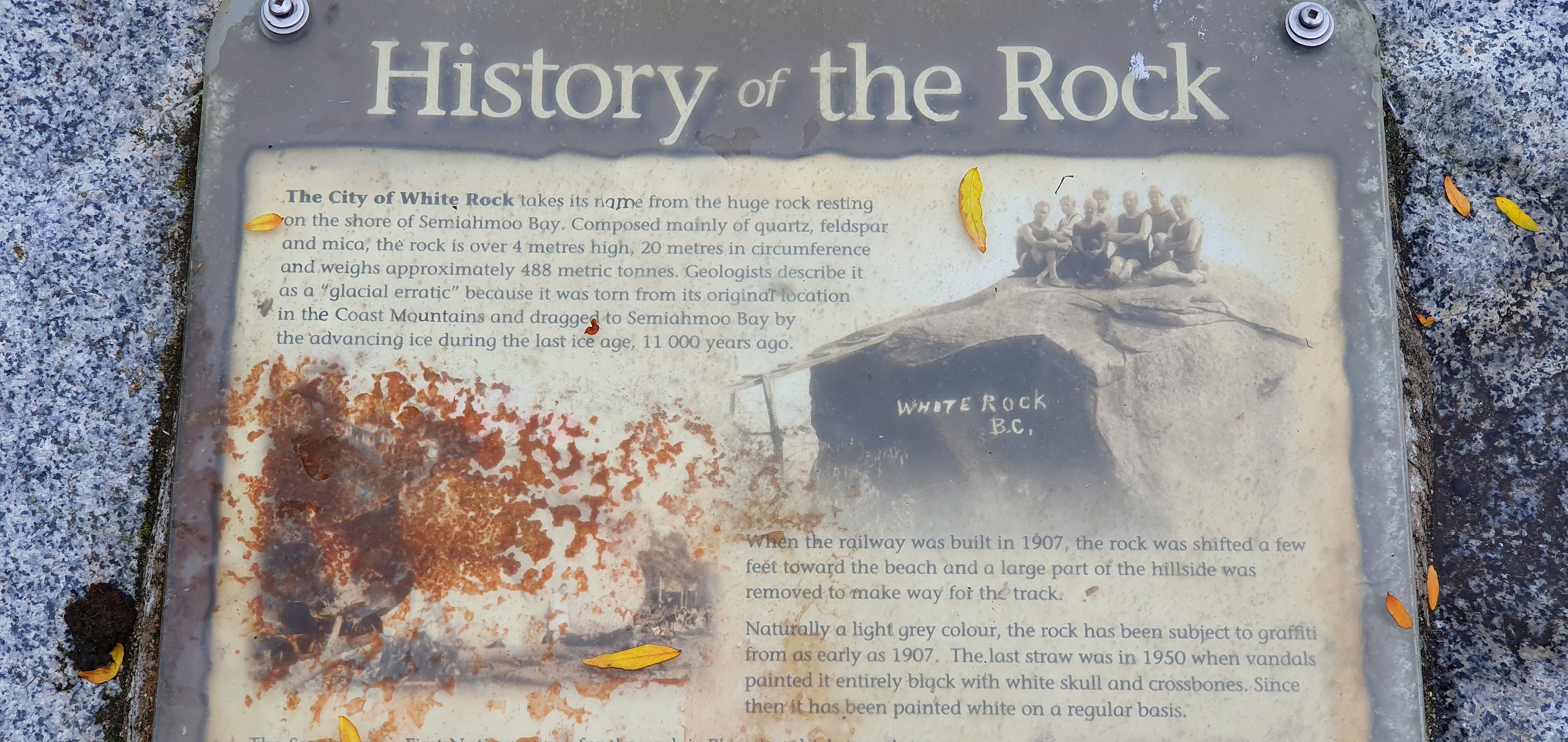 뜬금없이 큰 바위 하나에 하얀 페인트로 칠해 놓고