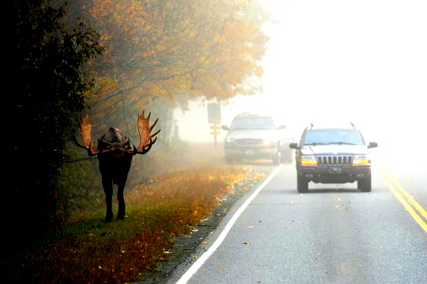 아침, 물안개가 자욱한데 그 사이로 나타난 무스의 자태가