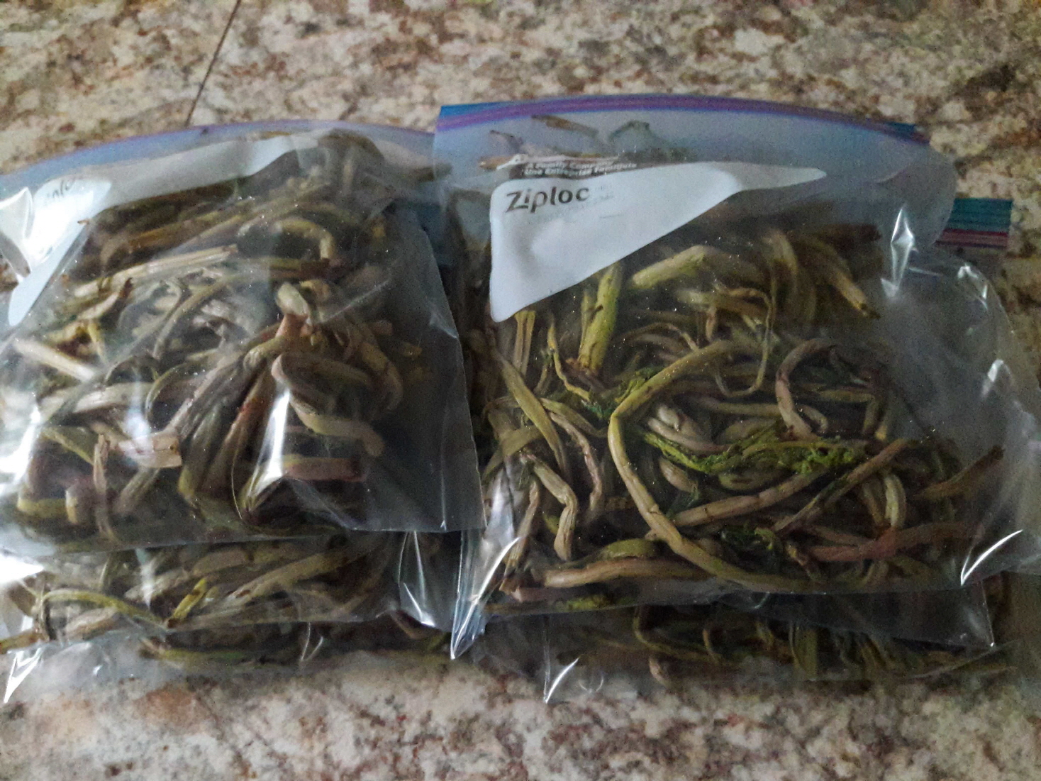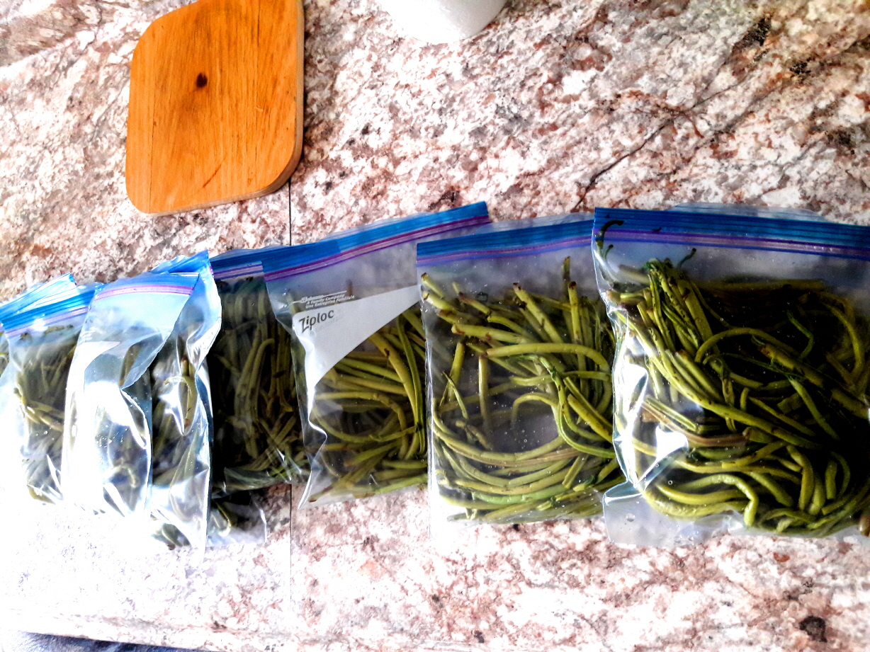 고비를 살짝 데쳐서 팩에 담아 냉동 보관을 합니다.