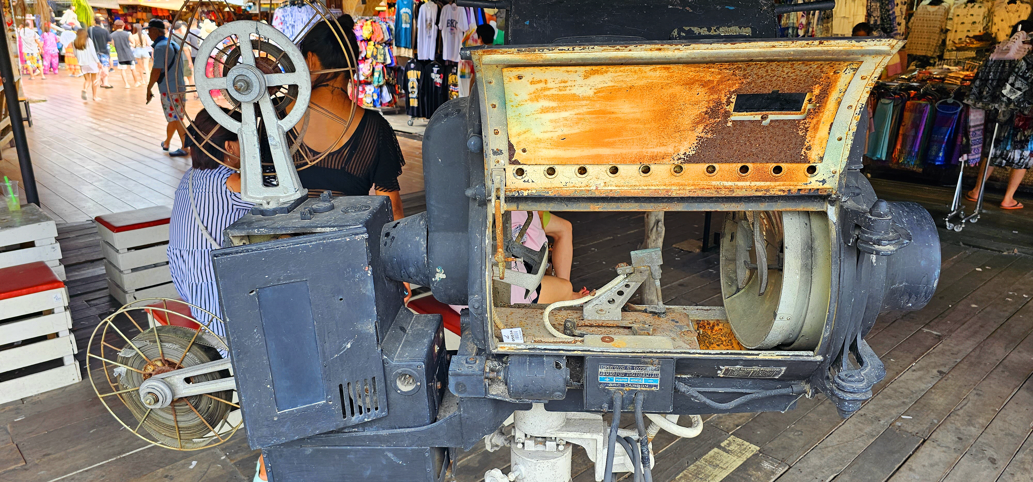 그 영사기로 이거 저거 굽는  마치, 군고구마 드럼통 같네요.