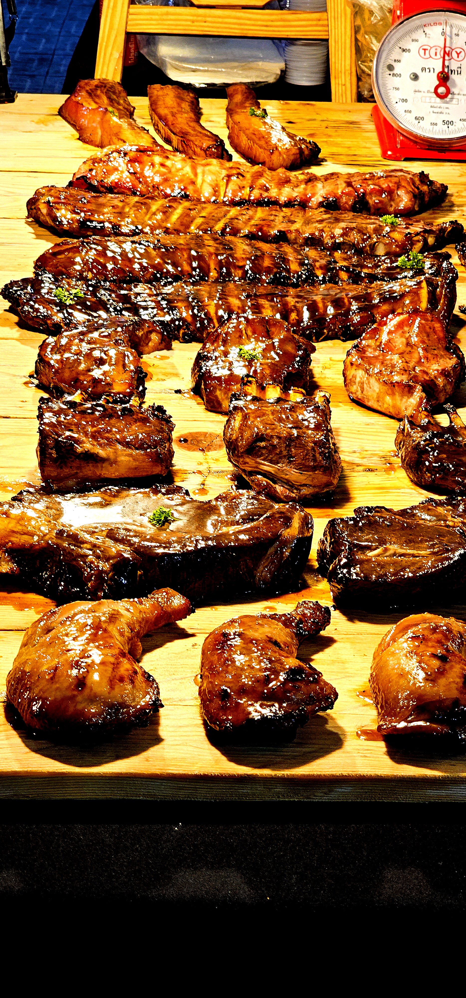 우리 입맛에도 맞는 각종 구이인데 폭립과 치킨까지 다양합니다.
