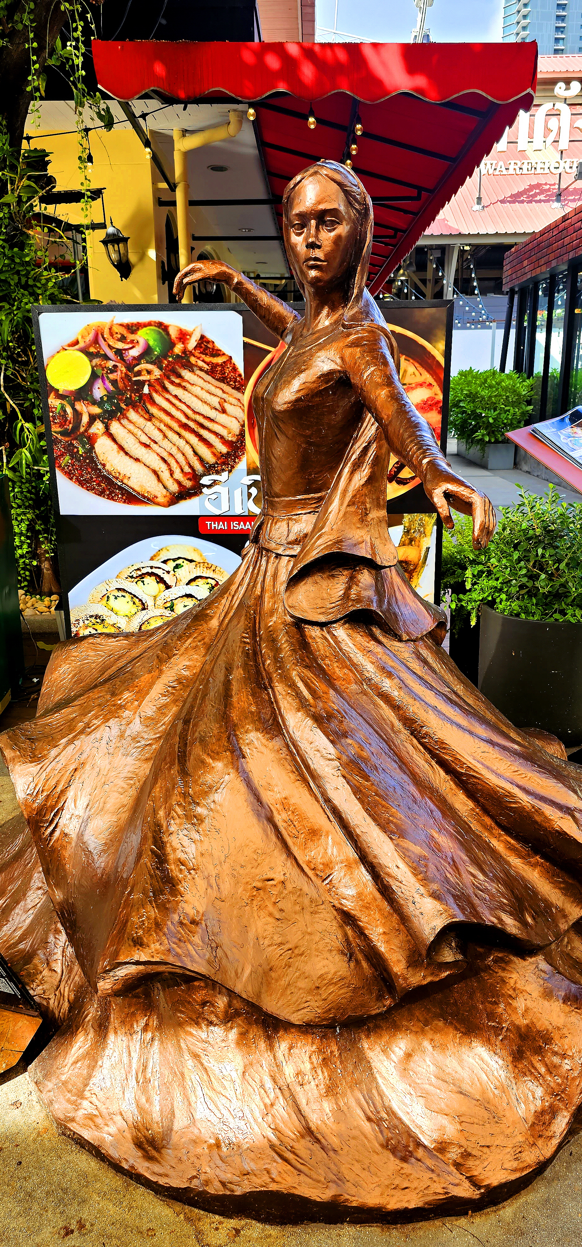 레스토랑 앞에 대형 동상이 있어 눈길을 끌어